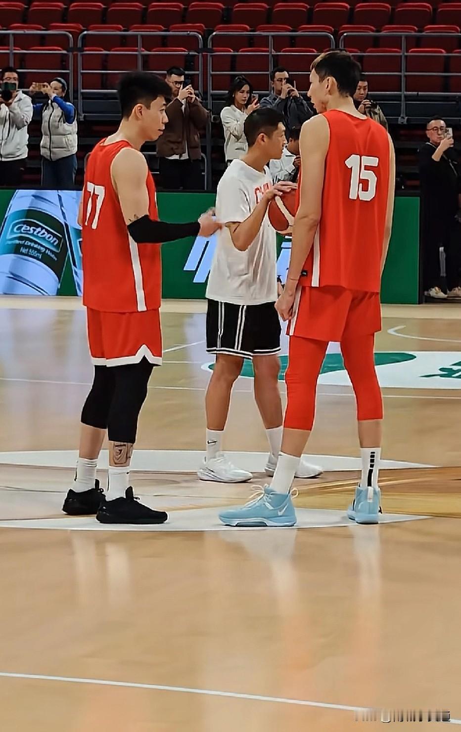 中国男篮正在集训,准备迎接韩国队的挑战! 本次集训中国男篮主力全部到位,周琦,张镇麟,曾凡博全部入选这次中国男篮集训队。 周琦作为男篮的领军人物,实力毋庸置疑。只要他想打,内线他的实力绝对是第一档。 看看他在训练中指导张镇麟跑位,张镇麟听的非常认真。张镇麟的性格。不是比他强的,他才不听你的。看着他认真的和小弟一样听周琦讲话,说明他俩关系非常好,也说明他对周琦非常尊敬和佩服。 希望这次中韩大战,周琦带领男篮大胜对手! 大家觉得这场比赛男篮会赢韩国多少分?