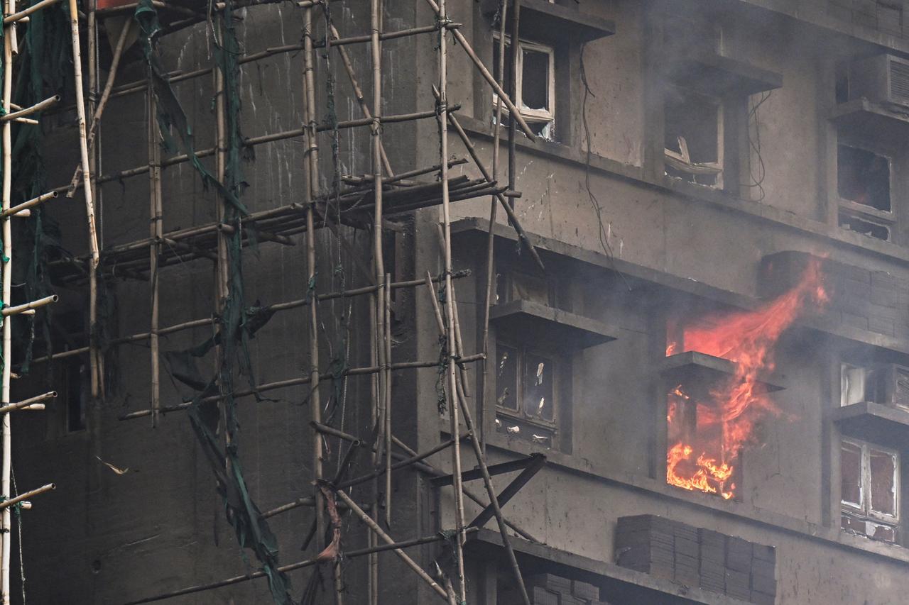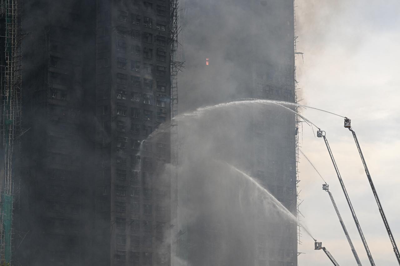 香港新界大埔有31层楼高的宏福苑火灾,碰到火灾时,怎么逃生? 高楼避难原则:千万不能搭电梯、不可躲在浴室,不可浪费时间寻找湿毛巾捂口鼻而延误逃生。 不可为了收拾财物而延误,以保命求生为首要目标。 为什么不可搭乘电梯?逃生火场很可能会发生断电,反而被困在电梯内。 也不可躲在浴室,火场第一杀手为浓烟,浴室门和天花板大多是塑料材质,不耐高温,浓烟温度大约200度至400度就可以使塑料门熔化变形,躲在浴室里无法有效阻绝浓烟。 切记不要浪费时间寻找湿毛巾,浓烟是头号杀手,不可尝试穿越浓烟逃生,以往用湿毛巾捂住口鼻穿越浓烟的观念是错误的。湿毛巾挡不住浓烟中的一氧化碳和有毒气体。 火场逃生流程: 1、开门,往1楼往外逃生:逃生最佳策略就是离开建筑物,最好方法就是往1楼往外逃生。烟平均上升速度为每秒3至5米,人平均往上速度为每秒0.5米,人往上跑是跑不赢烟的,火场逃生原则是往下逃生。 在开门之前应先触摸门板上方测试温度,观察门外是否有烟雾。如门板上方烫手时,表示门的另一边已是高温状态,切勿开门,找其它路线。如未感高温,先开一条门缝观察门外状况是否有烟雾,无烟雾再逃生,并随手关门,防止火势及浓烟扩散。如有烟雾则应关门退回室内,用衣物或毛巾将门缝塞住,防止烟雾流入。 2、到楼梯间未见烟雾,可继续往下往外跑:只有在确认楼梯里没有任何烟雾时,才可选择走楼梯往下,走有防火门的安全梯是最佳选择,因为关上防火门可阻绝火势及浓烟扩散至安全梯间,形成安全逃生环境。 3、楼梯间往下逃生时发现烟雾,应水平方向寻找路线:如果发现有烟雾从楼梯间下方蔓延上来,表示下方发生火灾,是一个很危险的环境,此时不应往上跑,也不应往下跑(不可尝试穿越烟雾逃生),而选择水平方向跑,关门以防止火势及浓烟侵入,再设法堵住门缝防烟雾。 4、平时有意识规划2个方向路线,当主要逃生出口无法往下往外逃生时,寻找第二逃生出口往下往外逃生;如第二逃生出口也受阻,待援。拨打求救电话。 火场逃生,谨记随手关门!如起火点在居室内或屋内,逃离起火房和家里时,随手关房门,可将火势及浓烟局限于起火空间内,有利于其它房间或楼层的人逃生。 冷静,有助于找到安全通道。