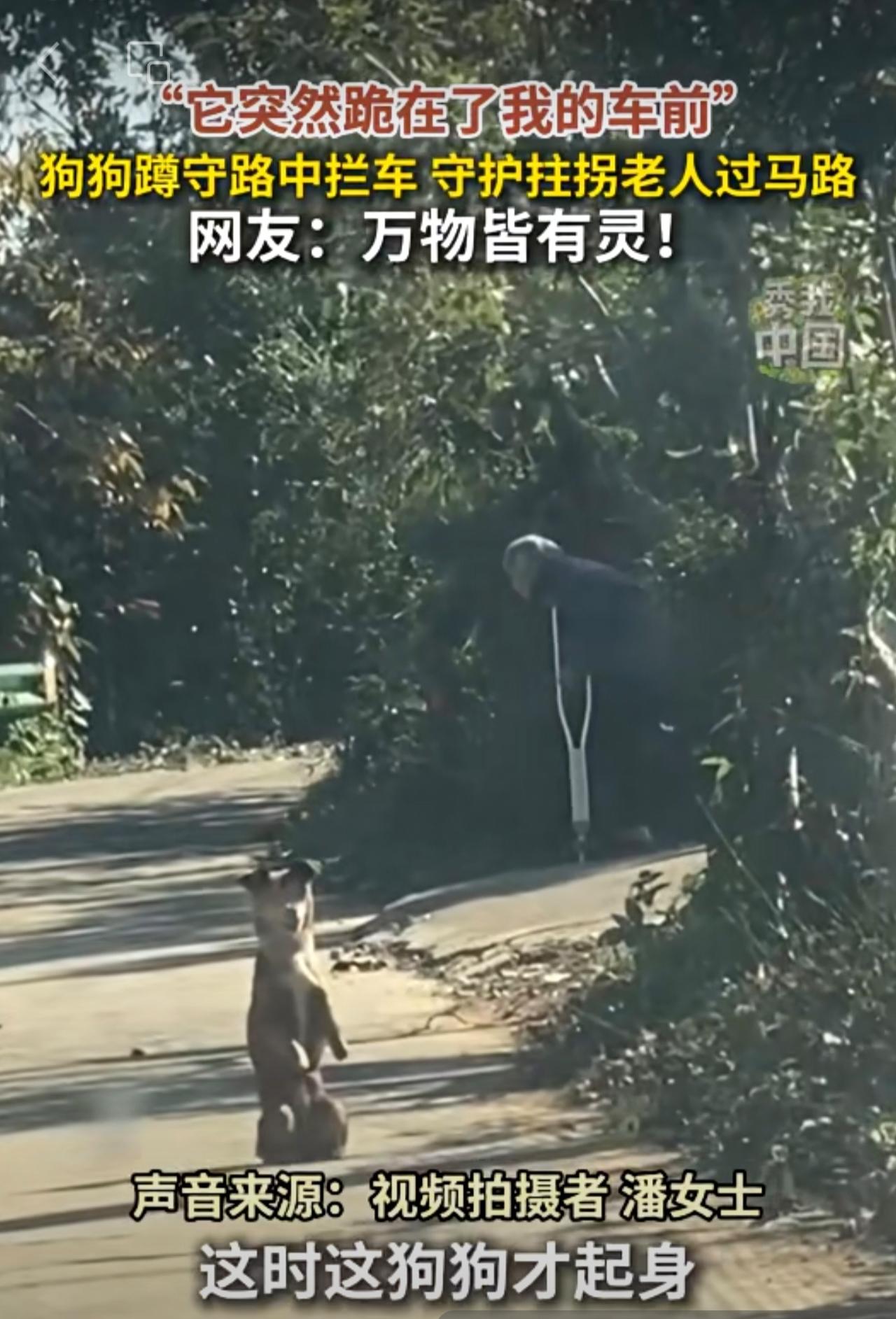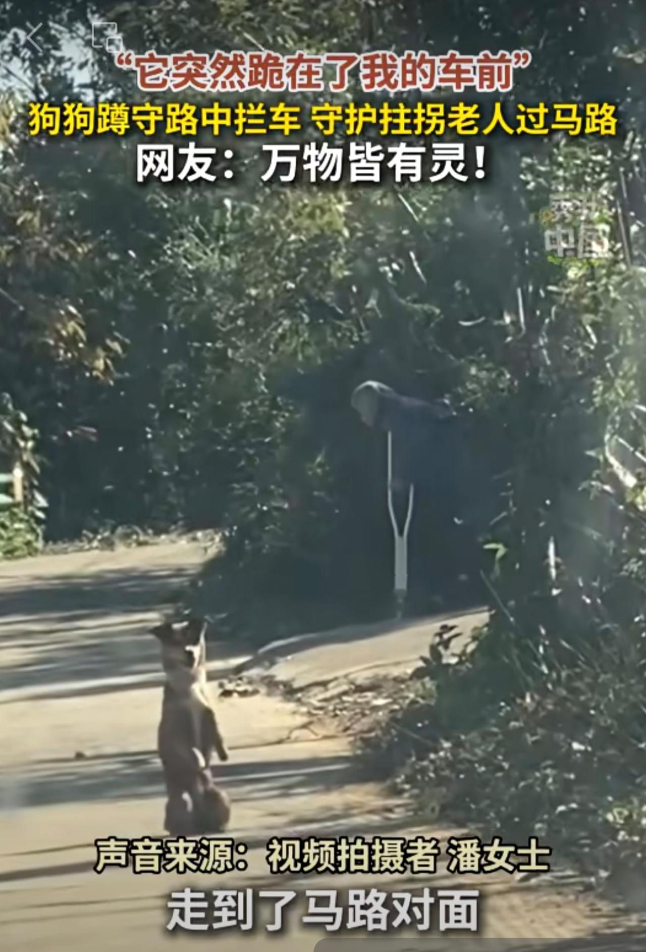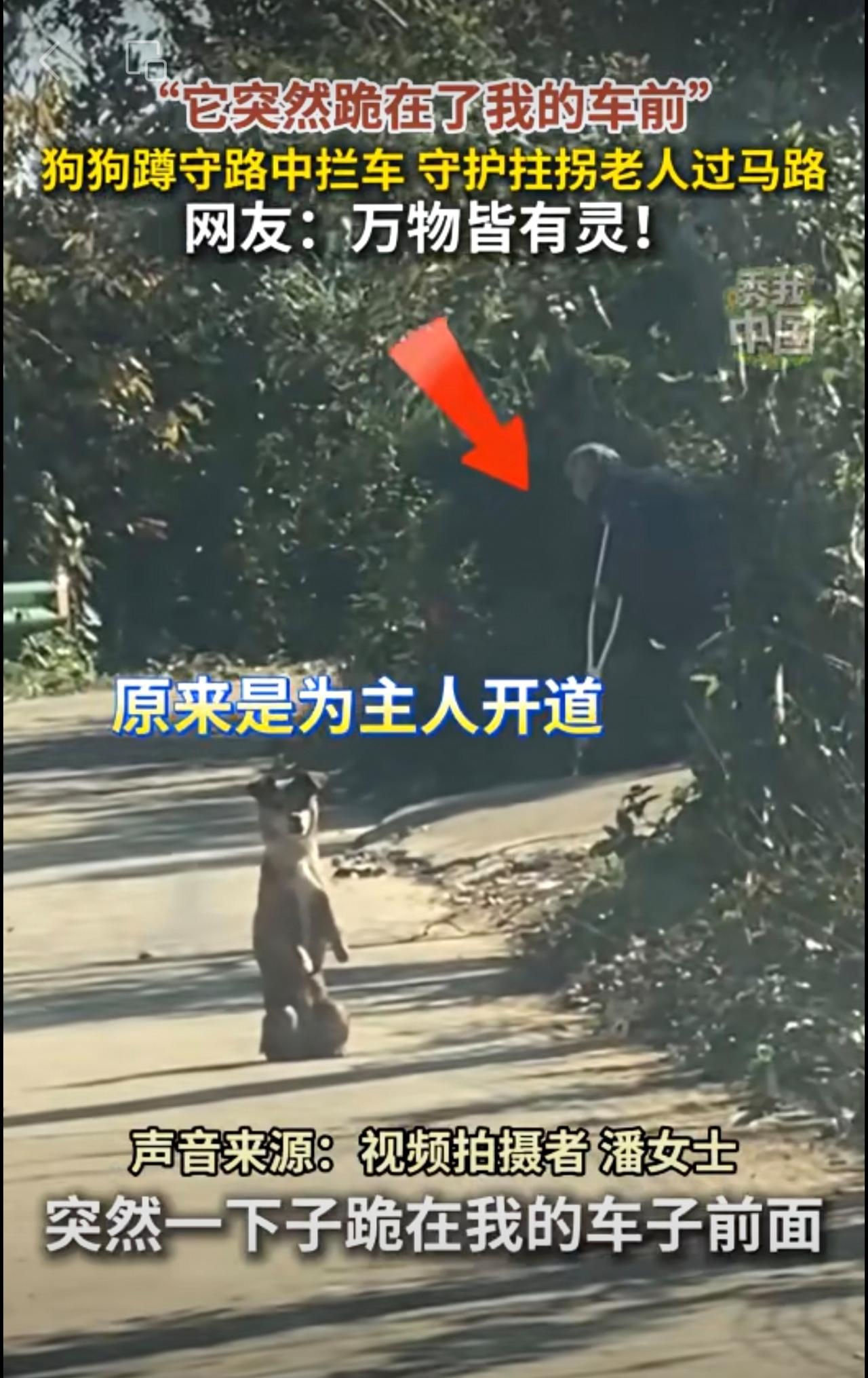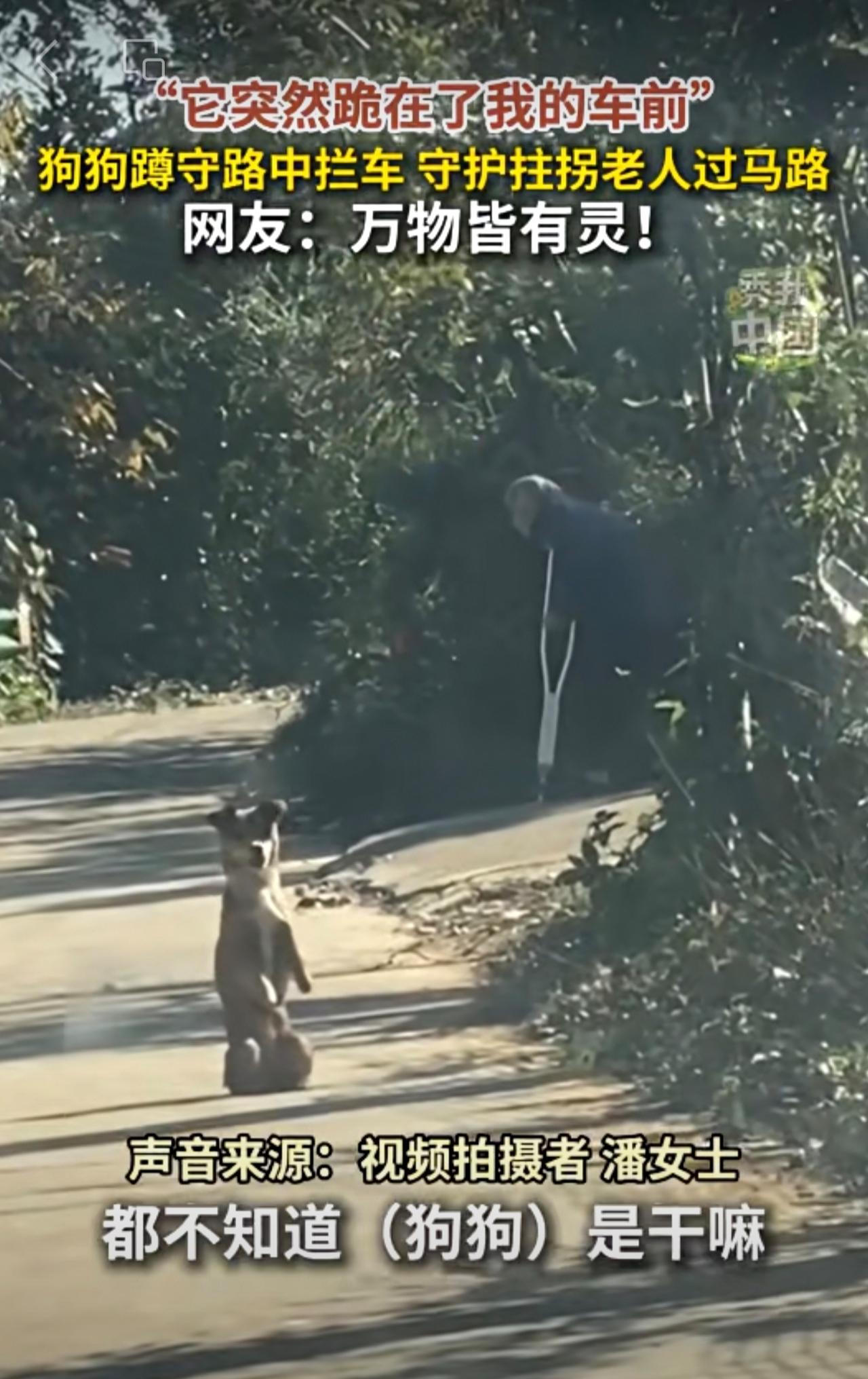 “它突然跪在了我的车前!”狗狗蹲守路中拦车,守护拄拐老人过马路。网友:万物皆有灵!