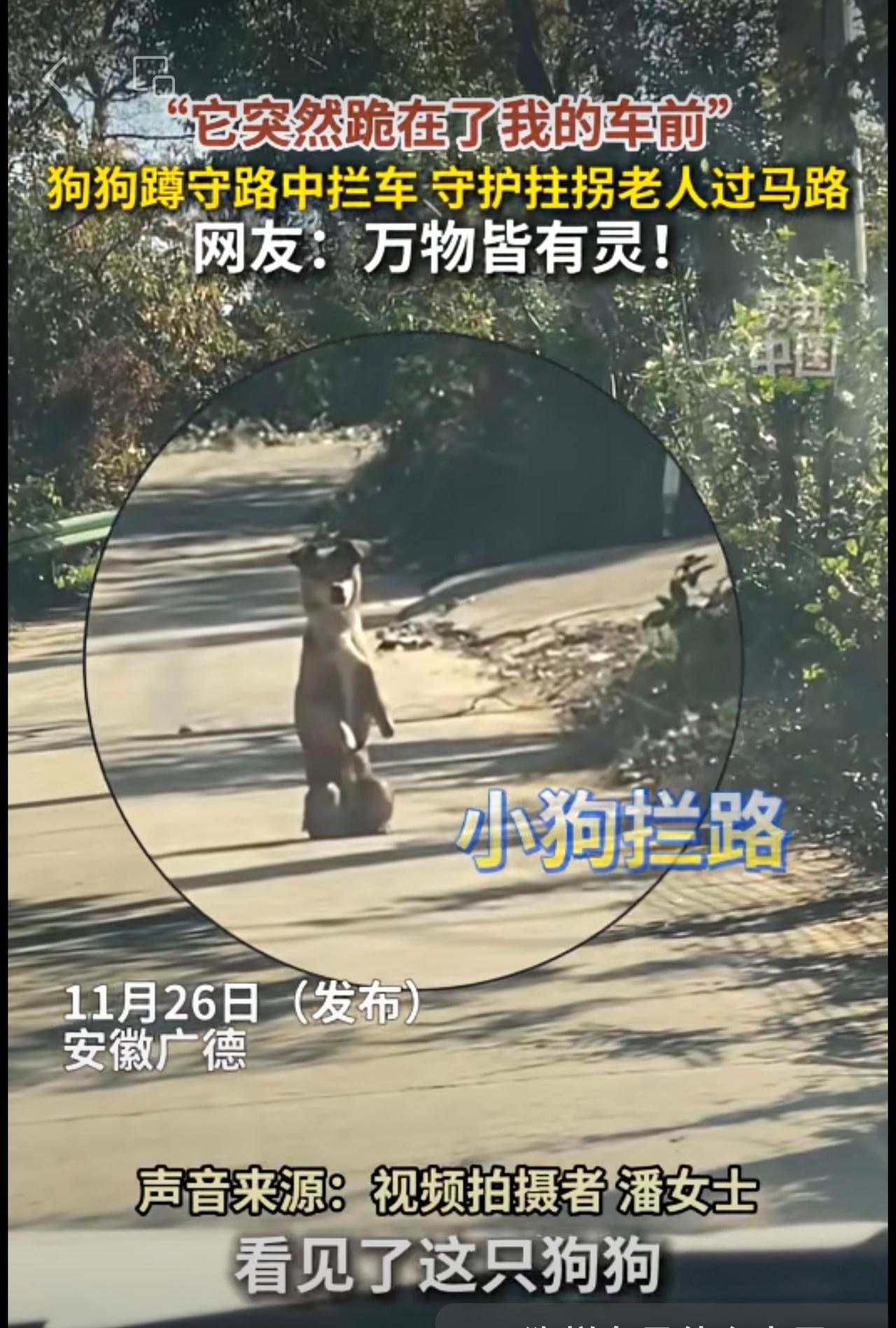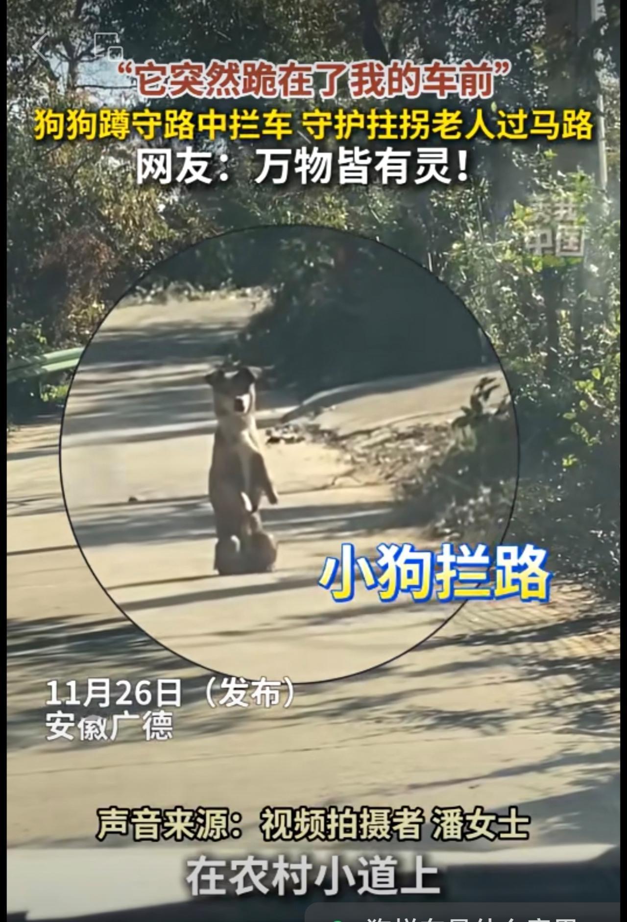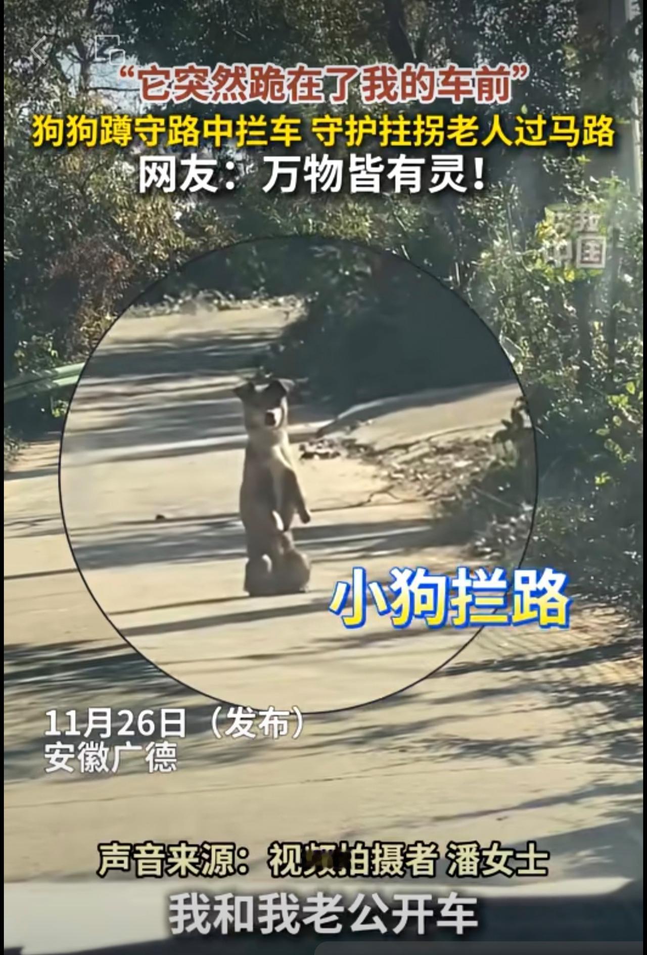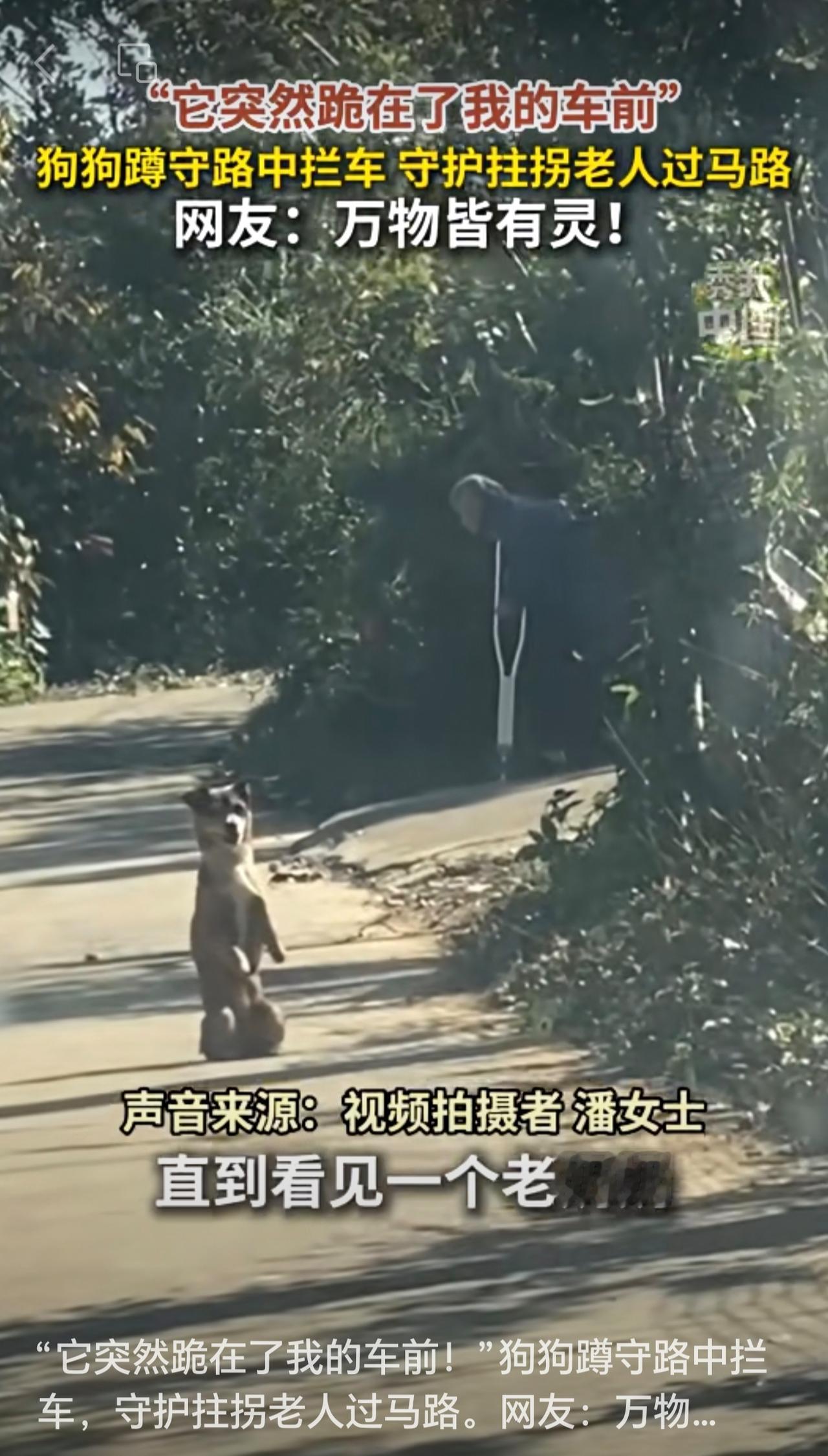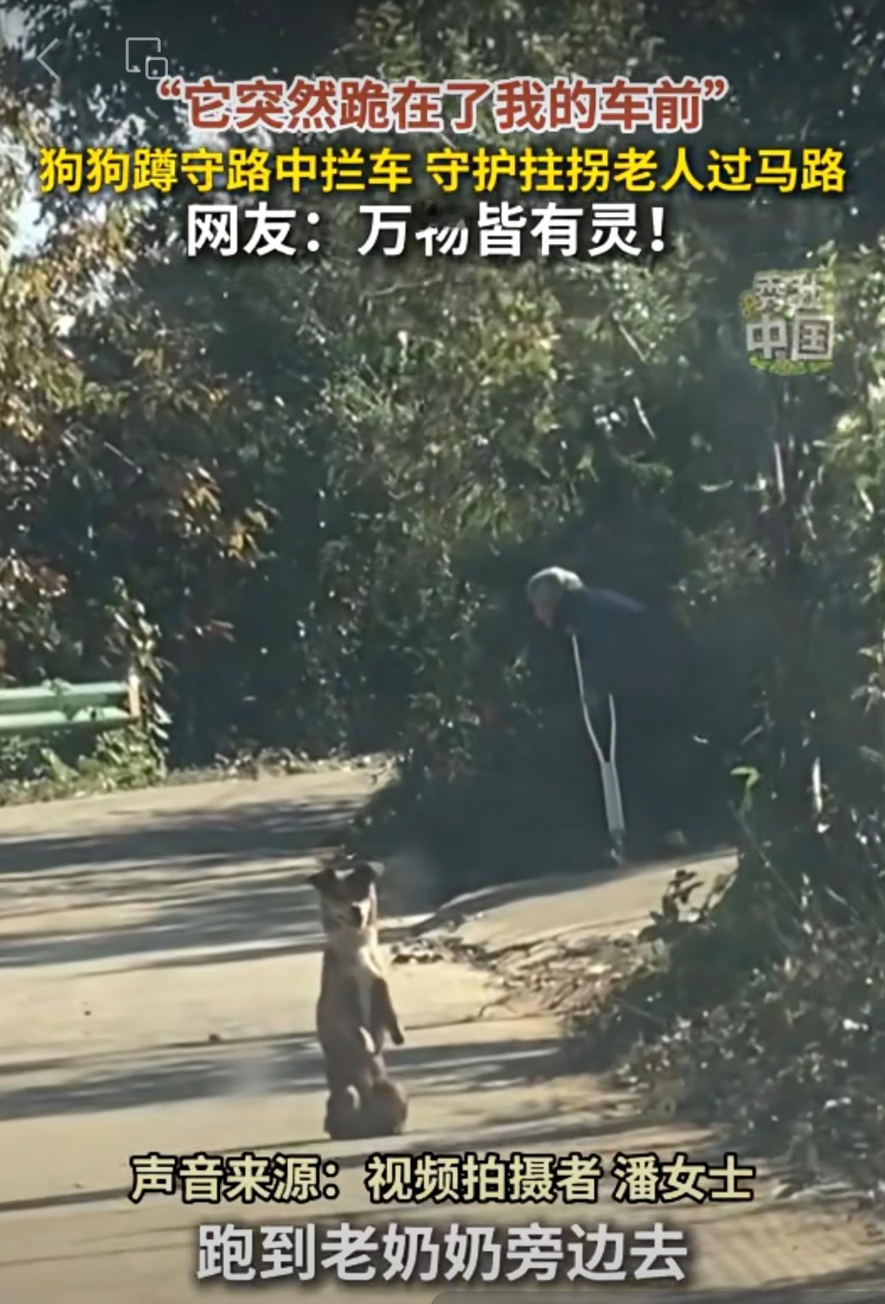 “它突然跪在了我的车前!”狗狗蹲守路中拦车,守护拄拐老人过马路。网友:万物皆有灵!