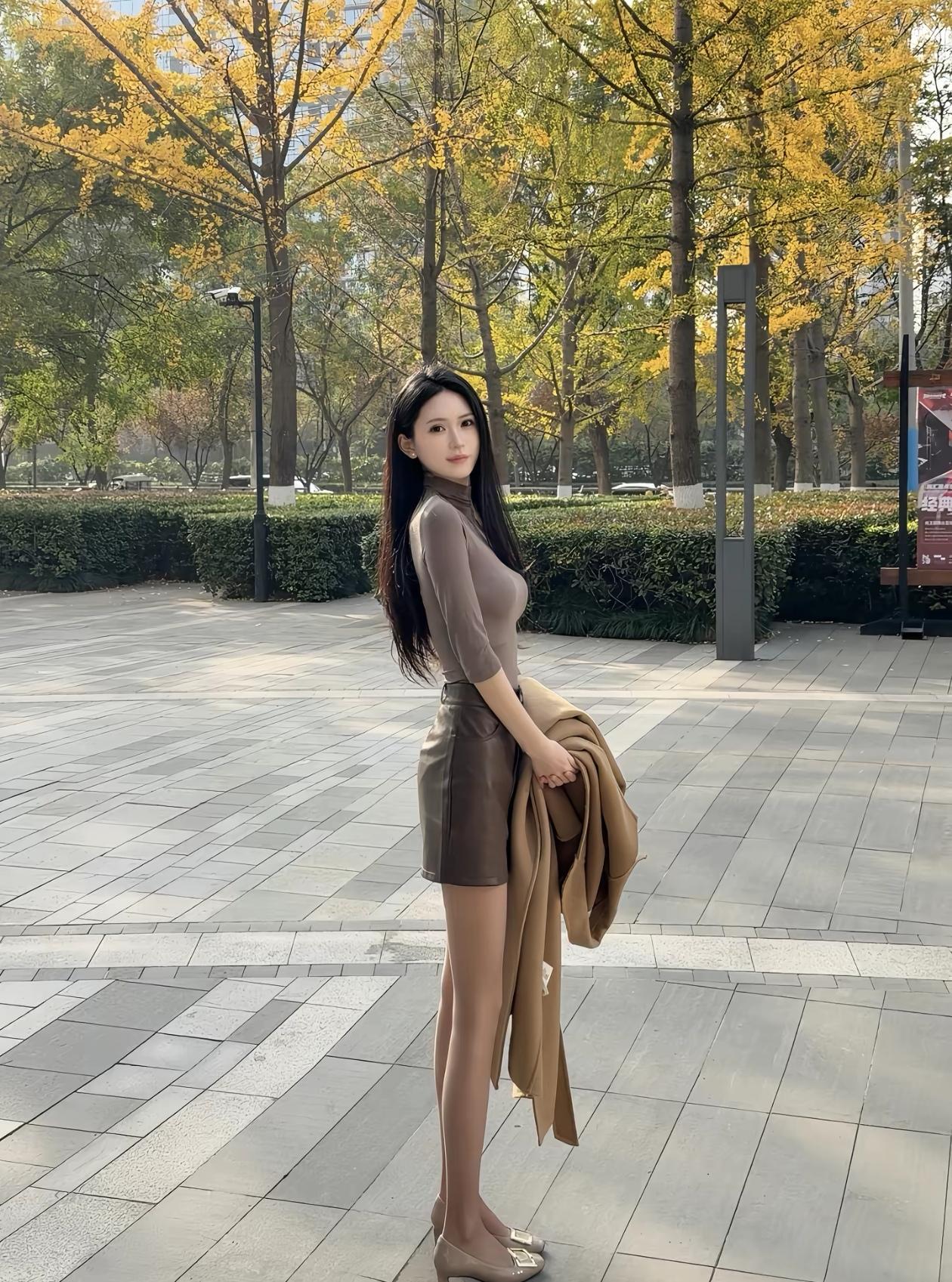 秋日暖阳下的时尚穿搭,尽显优雅与自信。