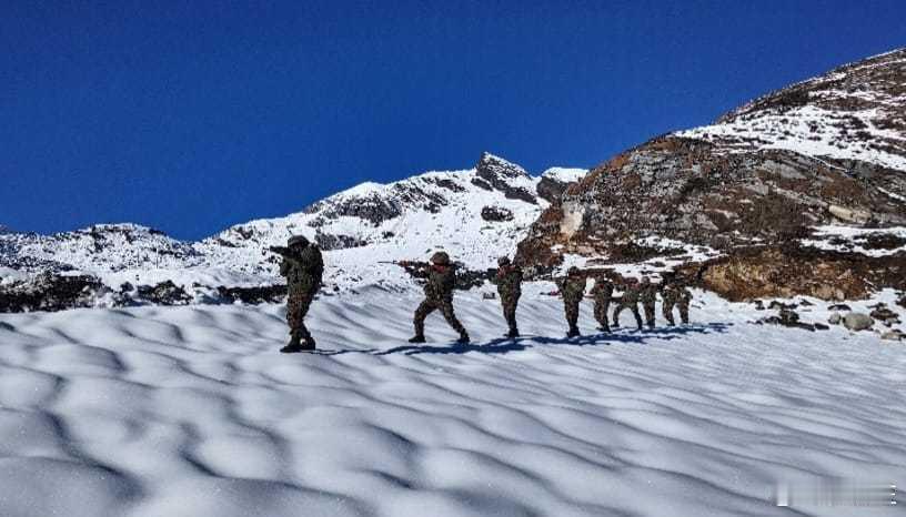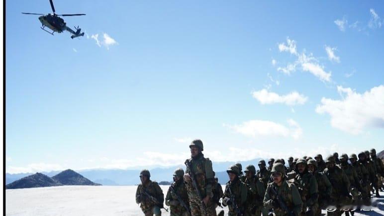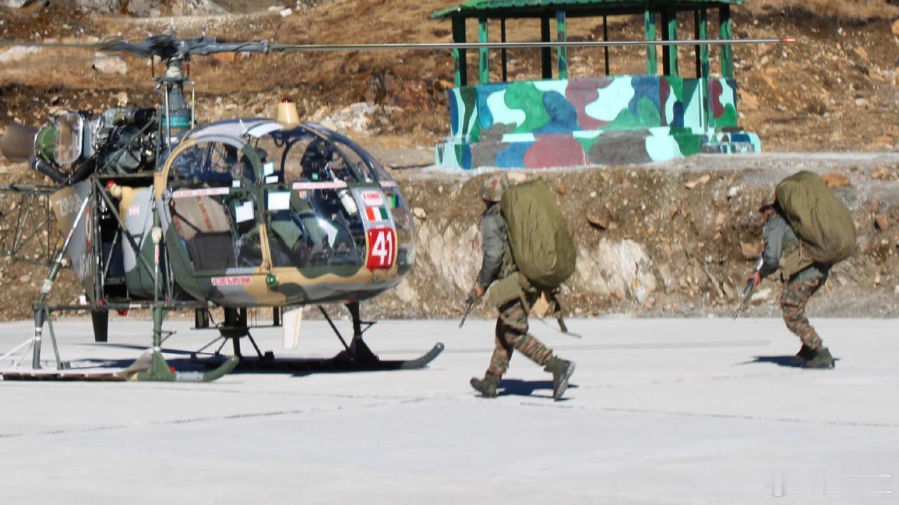 印度占领军近期在其占领的藏南地区进行军事活动的图片,印军出动了陆航直升机配合行动,驻藏南的印军第3军和第4军都有直属的陆航旅,主要装备“印度豹”直升机和楼陀罗(咆哮者)武装直升机。步兵分队加强了无人机,并且在图3中印军分队武器很杂,有美制西绍尔步枪,说明其是印军精锐分队。