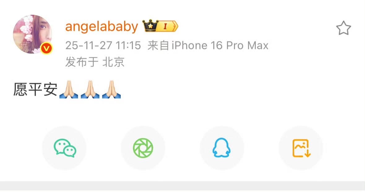 娱乐angelababy发文为香港祈愿平安angelababy为香港祈愿平安a