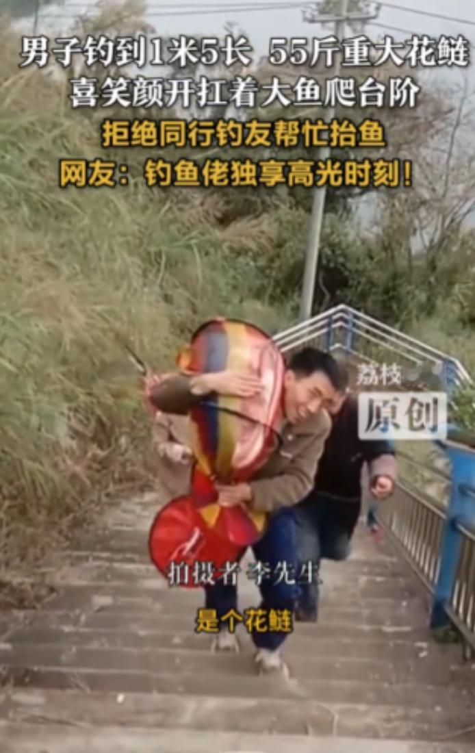 “赚翻了!”近日,贵州毕节,一男子用比头发丝粗不了多少的线钓起了一条55斤重的巨型花鲢,他喜出望外,自己一个人就把这沉甸甸的战利品扛上肩爬坡,全程拒绝好友帮忙,并表示自己可以吹1年的牛。网友:钓鱼佬独享高光时刻。 在钓鱼圈里,钓线的粗细基本决定了能钓上鱼的大小,像这种比头发丝粗不了多少的线组,按常理来说,顶多只能钓钓中小型鱼类,稍微大点的鱼一挣扎线就容易断,可这位钓友偏就用这看似 “脆弱” 的装备,完成了一次堪称极限的操作,把钓鱼圈的 “玄学” 变成了实打实的荣耀。 当天他在毕节河畔垂钓,本来也没抱太大期望,可突然钓线传来一股巨大的拉力,差点把他拽进水里,他心里一紧,知道遇上 “大货” 了,赶紧握紧鱼竿,不敢有丝毫大意。 这条巨型花鲢可不是善茬,上钩后在水里疯狂挣扎,一会儿往深水区冲,一会儿又左右乱窜,完全不想束手就擒,钓友只能耐心周旋,一边稳住鱼竿,一边顺着鱼的力道慢慢消耗它的体力,这场拉锯战持续了很久,直到水下的巨物彻底筋疲力尽,他才小心翼翼地把鱼拖到岸边,成功将这 55 斤的 “水下怪兽” 降服。 看着眼前这条肥硕的花鲢,钓友激动得说不出话,脸上的笑容藏都藏不住,一个劲地说 “赚翻了”,从河边到坡顶有一段不短的距离,而且路面不算平坦,这条 55 斤重的鱼沉甸甸的,对于已经在拉锯战中消耗了大量体力的他来说,绝对是个不小的负担,身边随行的朋友看着他气喘吁吁,实在不忍心,就主动上前想搭把手,帮他分担一部分重量。 可让人没想到的是,面对朋友的热心援助,这位钓友想都没想就拒绝了态度异常坚决,他说啥也不让别人碰自己的战利品,执意要独自一人把鱼扛在肩头,只见他小心翼翼地把鱼背起,双手紧紧托住鱼身,一步一个脚印地往坡上爬。 每走一步都显得格外费力,沉重的鱼身压得他脊背都弯了,额头上布满了汗珠,嘴里大口喘着粗气,但只要有人再提帮忙,他还是摇着头拒绝。 仔细看他的表情,那种溢于言表的狂喜完全掩盖了身体的疲惫,在他看来这可不是简单的搬运鱼,而是属于自己的 “高光时刻” 独角戏,这条鱼是他用细钓线硬拼回来的,每一斤重量都承载着荣耀,每一份艰难都凝聚着成就感,他不想让任何人的触碰稀释这份独属于自己的喜悦。 这种级别的 “大货”,对于钓鱼人来说,一辈子可能都遇不上几次,自然要全程亲自享受这份沉重又甜蜜的负担,事后他难掩激动,逢人就说这条鱼的事儿,直言就凭着这次的收获,足够他在钓鱼圈里理直气壮地吹上一整年的牛。 其实这种心态,只有真正的钓鱼人才能共情。钓鱼这事儿,讲究技术、经验,还得有点虚无缥缈的 “机缘”,能遇上这么大的鱼,还能成功钓上岸,概率本身就微乎其微。 所以遇上这种一生难遇的高光瞬间,钓鱼人都想独自珍藏,从与鱼周旋到扛鱼返程,每一个环节都不想错过,这既是对自己努力的肯定,也是对这条大鱼最大的尊重。 网友们看到他扛着大鱼爬坡的视频,都被他那股执着又得意的劲儿逗乐了,纷纷留言 “钓鱼佬的快乐就是这么简单又纯粹”“这高光时刻必须独享,换我我也拒绝帮忙”“55 斤的鱼,用细钓线钓上来,确实能吹一年”。 这场看似普通的垂钓,却成了钓鱼圈的一段佳话,这位钓友用实力证明了钓鱼的魅力,也让大家看到了钓鱼人对这份爱好的执着与热爱。 一条 55 斤的巨型花鲢,一根纤细的钓线,一段独自扛鱼的路程,不仅让他 “赚翻了”,更让他收获了一份能炫耀一整年的珍贵回忆,这大概就是钓鱼人最向往的幸福吧! (信息来源:《男子钓到1米5长55斤重大花鲢,喜笑颜开扛着大鱼爬台阶:拒绝同行钓友帮忙抬鱼网友:钓鱼佬独享高光时刻!》荔枝新闻)