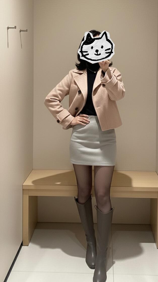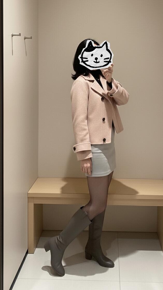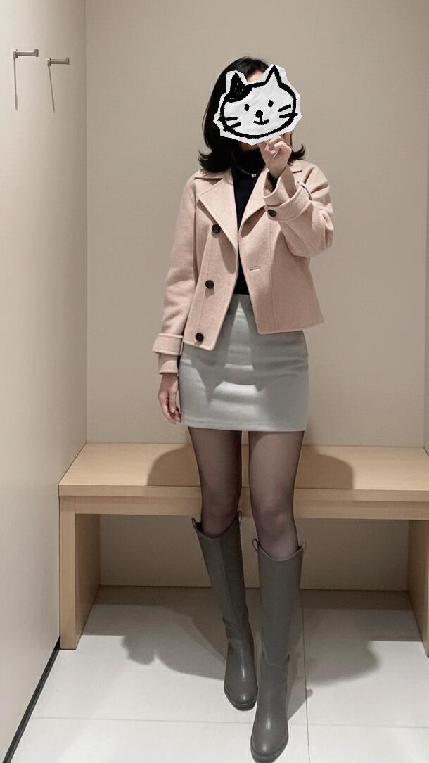 黑色短款面包服配紧身裙的“上暖下露”冬季穿搭
