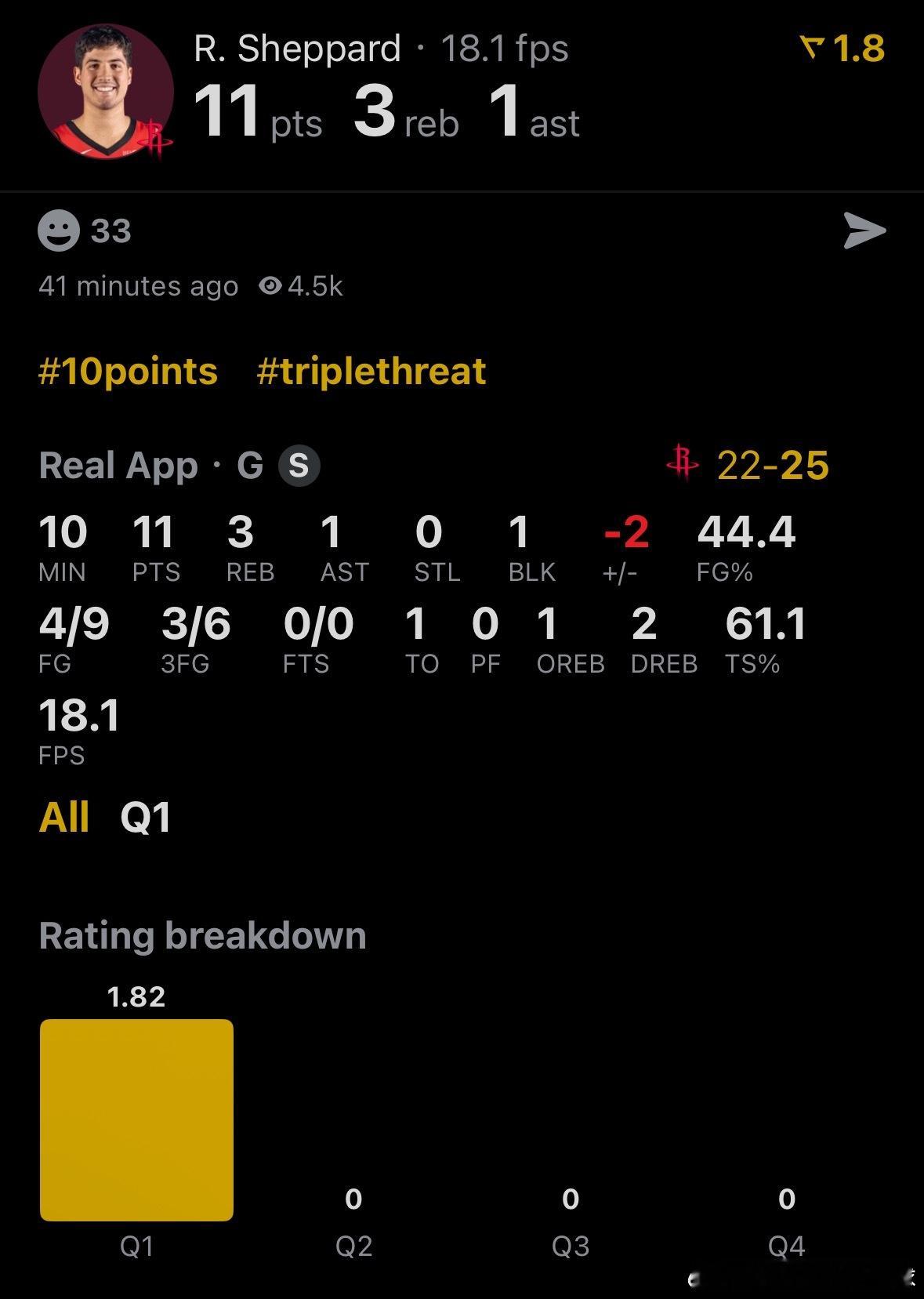 首节谢泼德9中4三分6中3砍下11分🔥🔥火箭vs勇士休斯顿火箭休斯顿火箭