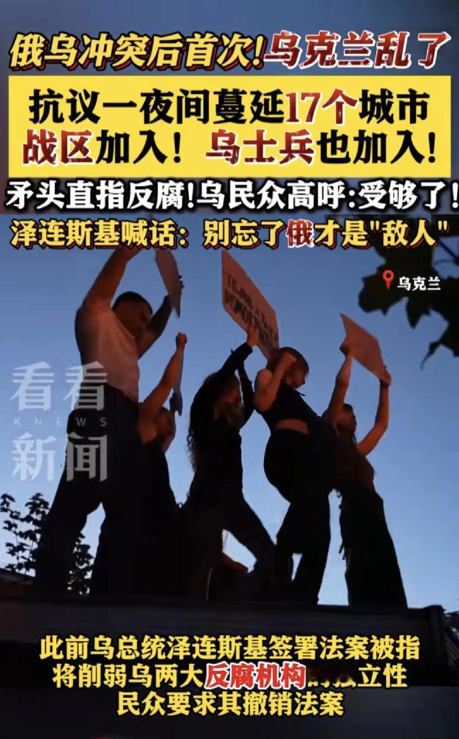 乌克兰怎么又开始老百姓上街反腐了,以前总统跟着俄罗斯混,这样反腐,说跟着西方文明社会就不会有腐败了,现在的泽连斯基可是西方圣人了,西方文明的代表,一群刁民现在居然说泽圣领导代表西方文明的政府有腐败,这有点左右矛盾啊! 显然这是老美老瓶换新酒,泽连斯基和欧洲不听话,现在算是警告泽连斯基,在不听话,老美不介意泽连斯基天天用黄金马桶。