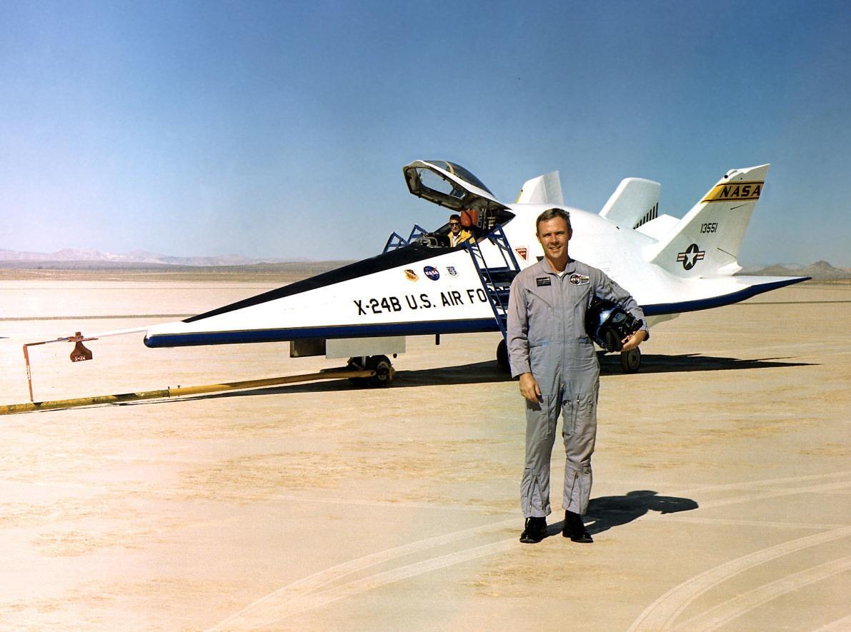飞行熨斗满天飞:美国50年前就玩升力体飞行器了!图片呈现的是美国航空史上一个具有里程碑意义的瞬间——NASA 升力体(Lifting Body)计划的最后一次飞行。时间是 50 年前的今天,即 1975 年。站在画面中央的飞行员是 Tom McMurtry,他在这一天驾驶了著名的 X-24B 完成该计划的最终任务。随着这次飞行的落幕,持续十余年的升力体研究正式画上句号,标志着一个实验飞行时代的终结。 画面中的飞机 X-24B 被昵称为 “Flying Flatiron”(飞行熨斗),因为它独特的三角形俯视形状和扁平机身。它属于升力体系列实验机的一支:靠机身本身产生升力,而不是传统一对机翼。X-24B 由原 X-24A 大幅改造而成,使其气动外形更为尖锐,高速性能更优,同时可模拟未来太空飞行器的无动力滑翔与着陆能力。这次 1975 年的最后飞行不只是一次普通的试飞,它象征着一个实验时代的收官。NASA 的升力体计划从 1960 年代持续至 1970 年代,研究目标是验证:再入飞行器在没有机翼情况下的稳定性、无动力滑翔着陆的可行性、高升阻比与结构形状对再入轨迹控制的影响等。这些成果后来直接用于航天飞机(Space Shuttle) 的设计,使航天飞机能够像升力体一样再入大气层,并在无动力情况下以滑翔方式安全降落。换句话说,X-24B 的试验数据构成了航天飞机飞行动力学的关键基础。