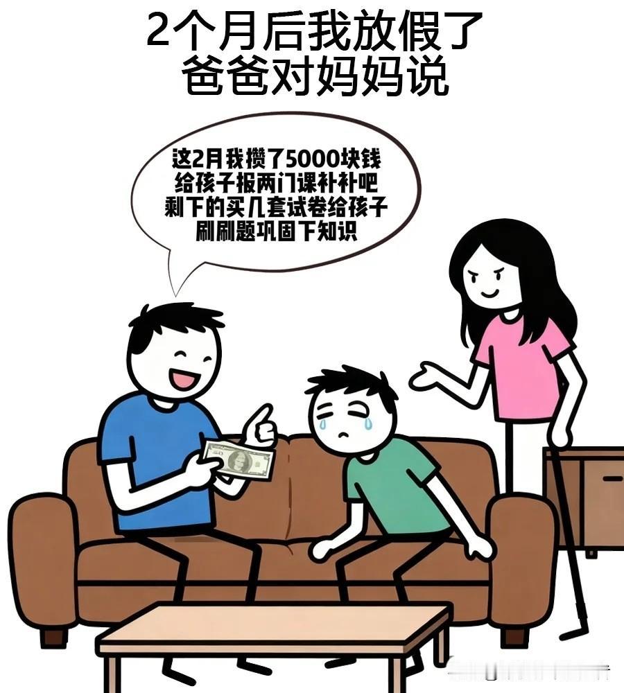 趣味漫画:我爸偷藏几千块钱,结果被我发现了,然后告诉老妈钱被没收了,2个月后我放假了,爸爸对妈妈说:这2月我攒了五千块钱,给孩子报个补习班
