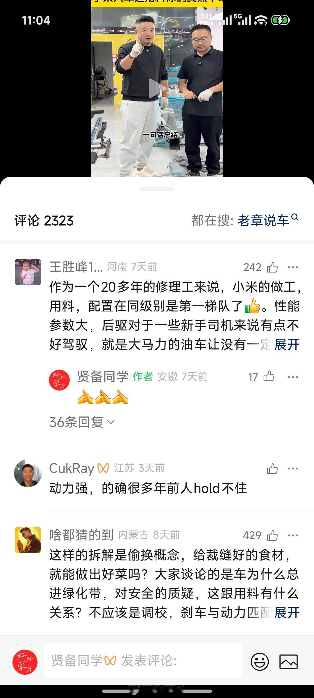 老章说车拆完小米SU7后,直接被部分网友喷的不敢继续拆了。我在各个平台也二剪发了一些视频,基本都是大几十万的播放,但是评论区和后台消息真的是骂的没法看。以前知道有黑水军主板机,但是确实不知道居然有这么多。之前我直播的时候,网友给我说老章直播间但凡说几句小米SU7用料扎实的事实,立马就会有几千个主板机来直播间刷屏攻击,然后一会儿就全部撤退,确实让人叹为观止。你说拆车实际就是明显看出来小米汽车的用料在同段位确实是越级的好,结果马上就有人来喷用料好不代表其他地方就好。但是话说回来,用料都不好的话,你还能指望其他没法量化直观的地方能有多好呢?更有甚者,骂完车后再去骂车主,很多小米车主的提车视频下面的评论区都没法看,除此之外还有线下恶意划车的,这类情况以前真的是罕见。线上网络环境的信息茧房影响到了线下,不得不说看到小米这边也在积极协助车主做诉讼支持,期望可以让有些人收敛一下吧。小米是头一回造车,但是小米汽车的工程师们不是头一回造车。目前无论是SU7还是YU7,50万车主们的口碑认证,各种拆车实际用料摆在面前、部分车主遭遇极端碰撞后的再次选择等等,事实胜于雄辩。