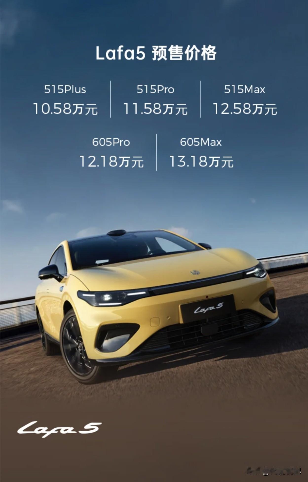【10万级轿跑新物种!零跑Lafa5:年轻人的第一台“电动GTI”来了】 家人们,广州车展挖到宝了!零跑居然搞出一台专为年轻人打造的“驾趣小钢炮”——Lafa5,预售价直接杀到10.58万起!这价格配上无框车门、后驱6.4秒破百、800V快充,简直把“性价比”三个字刻进骨子里。说真的,15万以内想买台既有颜值又有操控的纯电轿跑?目前市面上还真没竞品,Lafa5算是精准踩中了年轻人“既要又要”的需求痛点。 第一眼看到实车,我直接被它的低趴宽体造型拿捏了!1880mm的车宽配上溜背轿跑线条,无框车门+纯平侧窗一开,仪式感直接拉满,这颜值放街头绝对比同价位的海豚、ID.3更招摇。前脸贯穿式灯带+间断式日行灯,车尾飞翼星芒尾灯,加上19英寸掠翼轮毂,运动气息直接溢出屏幕。更绝的是配色——电掣黄、摩根粉、风驰灰……6种车色里有2款专属色,开出去撞衫率极低。 你以为它只是花瓶?Lafa5的底盘可是由零跑和Stellantis欧洲团队(就是调校玛莎拉蒂的那个!)联合操刀。50:50黄金轴荷比+后置后驱布局,过弯稳得像贴地飞行,实测转弯半径才5.17米,城市掉头一把过。不过运动取向的悬架滤震偏硬,过减速带时后排会有点颠,但喜欢操控的小伙伴应该会爱上这种“路感清晰”的感觉。 零跑这次真是把“技术平权”玩明白了!全系标配高通8295P芯片,车机反应快到飞起,AI语音支持方言识别+连续对话,开车时喊一句“打开座椅通风”立马响应。高配版还塞了激光雷达+26项智驾功能,高速NOA、自动泊车全都有。最贴心的是那个“零跑灵动贴”——蓝牙小硬件一键控制常用功能,比如锁车时顺手关窗,懒人福音了属于是。 全系标配800V高压快充架构,30%-80%电量只需18分钟,5分钟补能200km,周末跨城跑个小长途毫无压力。实测市区电耗13-14kWh/100km,605km版本实际能跑480km+,一周一充妥妥的。不过高速电耗会升到16-17kWh/100km,跑长途建议提前规划桩点。 空间实用党看过来:86%得房率藏惊喜 别看Lafa5是轿跑,空间利用率却很“零跑”!2735mm轴距+86%座舱得房率,后排横向空间同级领先,我178cm坐后排还有两拳腿空。后备厢常规435L,放倒座椅秒变1400L“移动仓库”,露营装备、婴儿车全塞得下。全景天幕1.02㎡配智能遮阳帘,防晒率99.9%,夏天不怕晒秃头。 选购建议:605Pro版闭眼入,Ultra版等等党 五款车型里,12.18万的605Pro版是性价比之王:比515Pro贵6000元,续航多90km,动力、无框车门、800V快充全配齐,适合既要通勤又要跨城的实用党。纯市区代步选11.58万的515Pro也够用;至于激光雷达顶配版(13.18万),建议科技发烧友再考虑。另外,明年Q2还会推Ultra版,专属运动套件+破风尾翼,操控再升级,等等党可以蹲蹲。 限时权益冲不冲?99元订金撬动1.25万福利 现在预付99元订金,能享2000元尾款抵扣+免费选装个性车漆,老车主增换购再补4000元,叠加跨年购置税补贴,算下来比预售价还香。 说到底,Lafa5就像零跑给年轻人的一封情书——它不迎合家庭用户,不搞中庸套路,而是把“驾驶乐趣”“个性表达”“智能体验”塞进10万级价位,让预算有限的年轻人也能拥有“人生第一台GT”。今晚它就正式上市了,各位“Lafa青年”,准备好抢车了吗? (注:试驾体验及配置信息来源于广州车展实测及官方资料,具体以交付实车为准。)