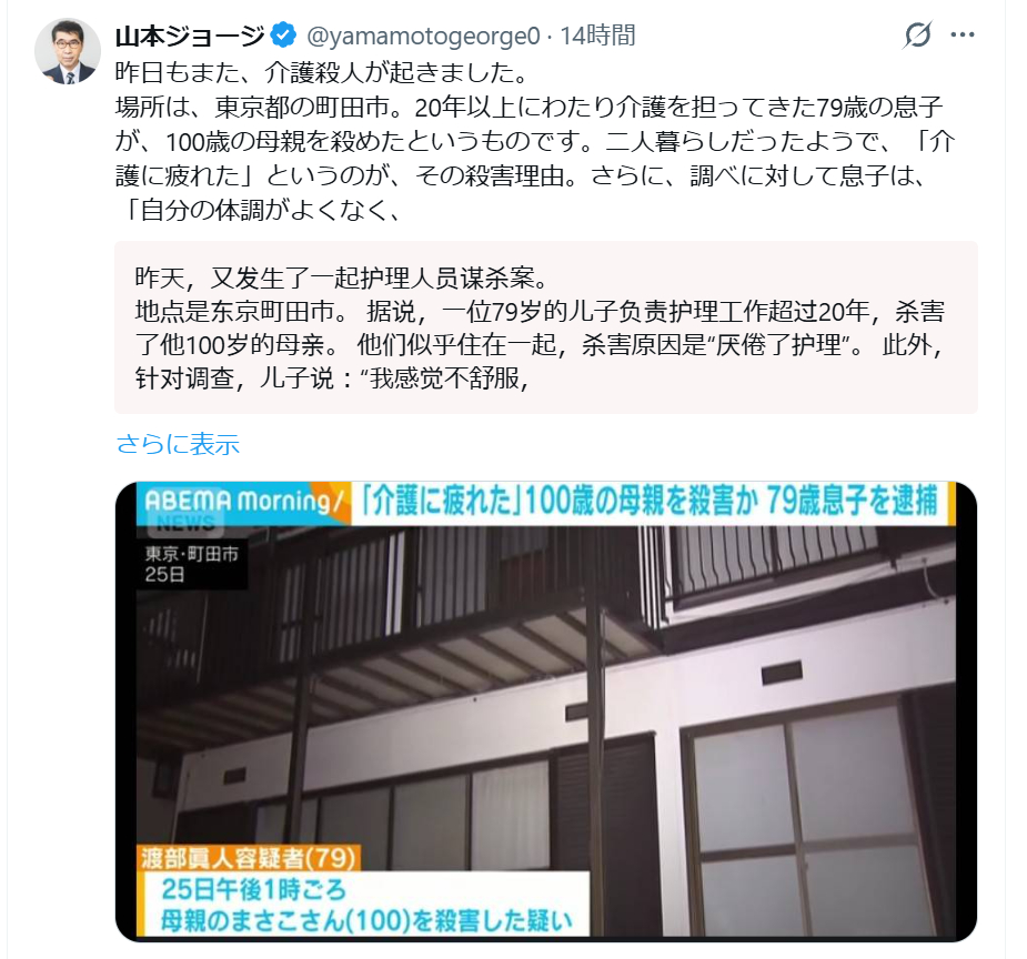 日本真的。。。。少子老龄经济到外交都处于非常危险的状态。。。今年税收还是历年最高,破了纪录。工资是一点没涨,很多地方还在降。。。还在物价翻倍。。。新闻也基本没啥积极向上的了,每天吵的不可开交。哎。。。今天的新闻是,80岁的老爷爷杀了100岁的妈妈,然后去自首,说累了。。(他已经照顾了20年)