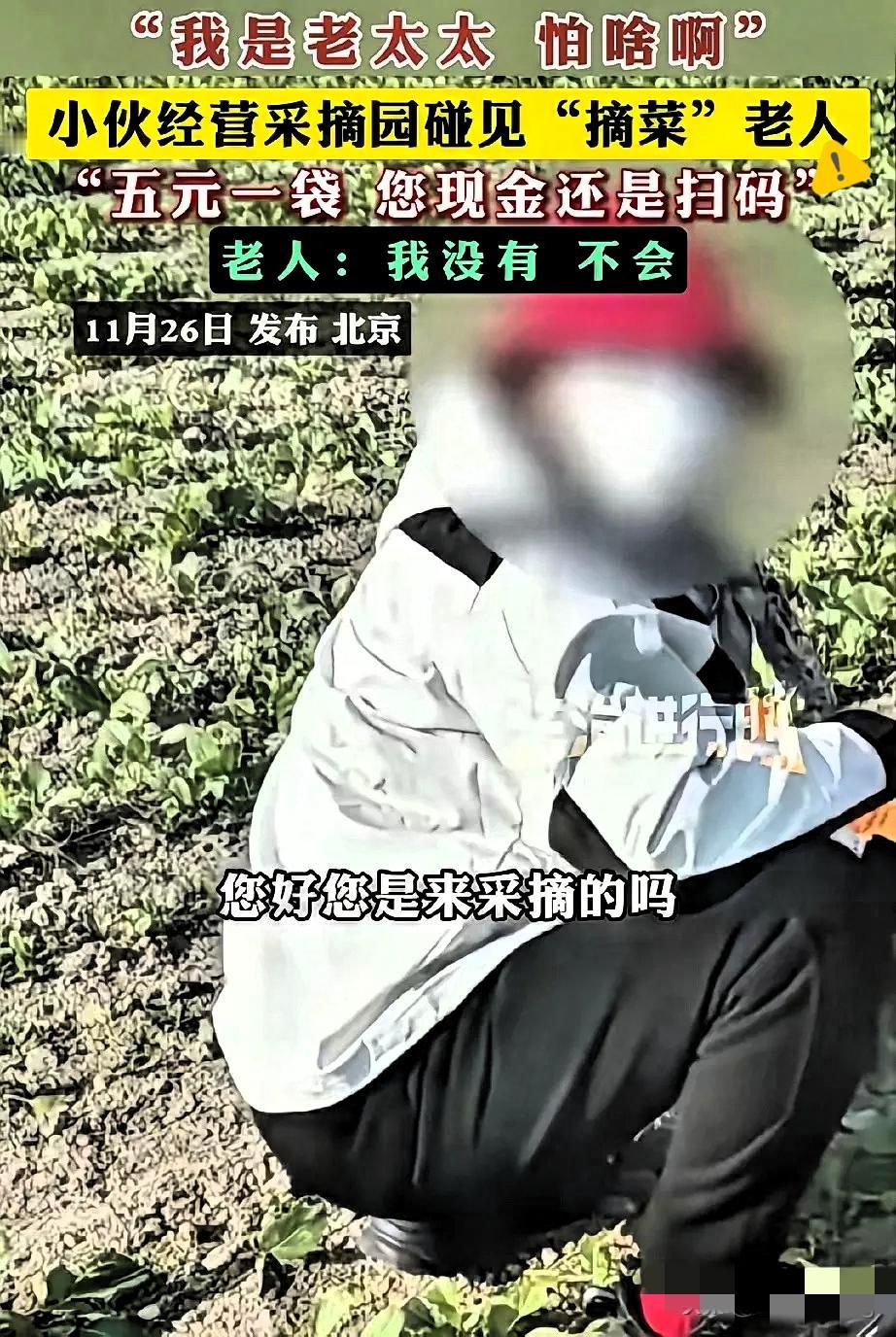 真没见过这么离谱的!北京这位70多岁老太太偷摘采摘园的菜,小伙客气要5块钱菜钱,