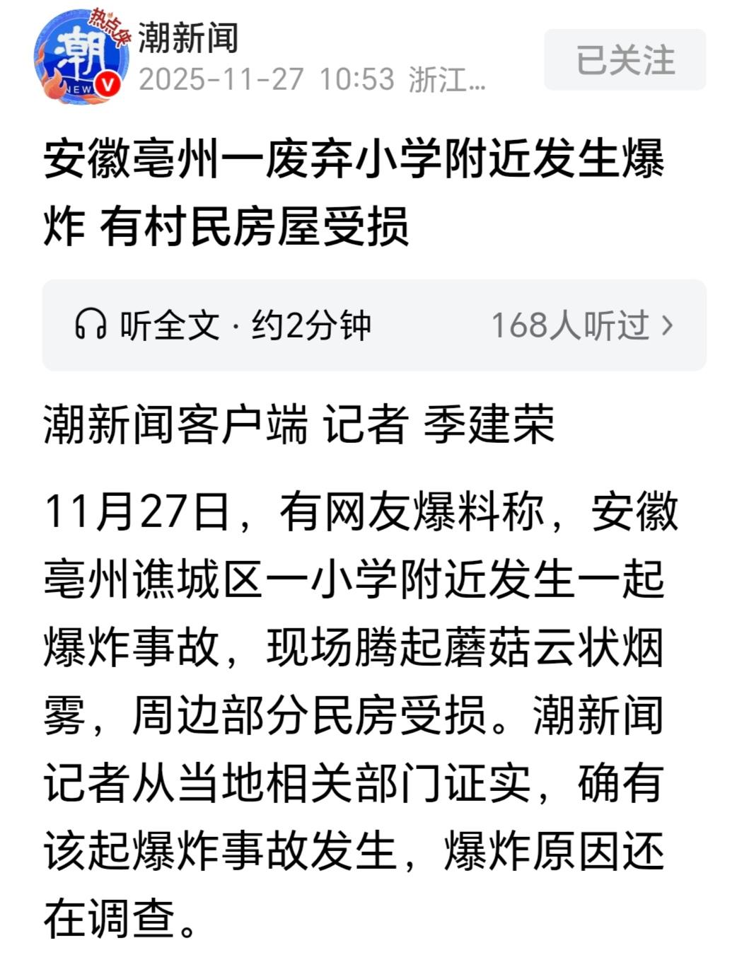 11月26日,安徽亳州谯城区赵桥乡一处废弃小学附近突发爆炸,现场升起蘑菇云,周边民房、厂房受损严重,一两公里外的居民家门窗玻璃都被震碎。有居民爆料,爆炸疑因相关部门在废弃小学内销毁查扣的烟花爆竹时操作失误导致。尽管当地应急管理局证实了事故存在,但爆炸原因仍在调查中,乡政府公开电话多次无人接听。 一、爆炸现场触目惊心:废弃小学旁炸出蘑菇云,两公里外遭波及 家人们,这两天安徽亳州的爆炸事故看得人手心冒汗!11月26号下午5点左右,谯城区赵桥乡的村民突然听到一声巨响,抬头一看,农田中间的一处建筑上空腾起了蘑菇云似的白色烟雾,紧接着就看到紧挨爆炸点的房子几乎全塌了。 从网友发的视频里能清楚看到,爆炸的威力是真不小。虽然爆炸点选在相对空旷的农田里,但周边村庄还是没能幸免。有附近居民说,出事的地方是卢天庙小学附近,这所小学已经废弃好几年了,“听说是政府查回来的烟花放在这儿销毁,可能工作人员操作失误才炸了”。 更让人揪心的是损失情况:离爆炸点近的厂房直接倒塌,稍微远一点的村民家,门窗玻璃全被震碎,墙体也出现了裂缝。有居民吐槽,“我们家离着一两公里呢,玻璃碎片溅得满地都是,更别说离得近的人家了,家里的家具、电器都被砸坏了”。目前当地正在统计损失,但关于怎么补偿,还没有明确说法。 值得注意的是,这可不是亳州第一次查处非法烟花爆竹。就在爆炸前几天,11月15号谯城警方刚公布4起非法储存烟花爆竹案件,11月26号“谯城发布”又曝光了两起,没想到当天就出了爆炸事故,难免让人把这两件事联系到一起。 截至11月27号,当地应急管理局确认了爆炸事故的真实性,还说“应该没有伤亡,因为是废弃小学”,但对于“是否因销毁烟花引发”这个关键问题,相关部门却没给出明确答案——赵桥派出所让咨询乡政府宣传部门,可记者多次拨打乡政府公开电话,始终无人接听,这波操作也让网友们议论纷纷。 二、网友吵翻了!这三个疑问戳中要害 事件一曝光,网友们的讨论直接炸了锅,大家的观点集中在三个核心问题上,每一个都问到了点子上: 有网友愤怒表示:“非法储存烟花爆竹查得挺积极,怎么销毁的时候就这么马虎?废弃小学再偏也是周边有居民的,这么危险的东西,怎么能随便找个地方就销毁?” 对于无人接听的乡政府电话,网友更是满肚子意见:“出了事找相关部门,电话却打不通,这是想回避问题吗?居民们损失惨重,最起码得有个说法吧!” 还有不少网友关心赔偿问题:“居民家的玻璃、房子都坏了,厂房也塌了,这些损失该谁来赔?总不能让老百姓自己扛吧?” 三、法律解读:这些红线碰不得,赔偿责任跑不了 不管爆炸原因最终是不是销毁烟花爆竹导致的,这件事都给我们敲响了警钟,其中涉及的法律知识大家一定要搞清楚,关键时刻能保护自己的权益! 首先,烟花爆竹销毁有严格的法律规定,不是随便找个废弃建筑就能办的。根据《烟花爆竹安全管理条例》第四十三条,没收的非法烟花爆竹必须由公安部门组织销毁、处置,而且销毁前得制定科学的方案,选择合适的场所,还要加强周边警戒 。另外,《危险化学品安全管理条例》也明确要求,危险化学品必须存放在专用仓库,还得有专人管理,像废弃小学这种没有任何安全防护设施的地方,根本不符合存放和销毁危险品的要求 。如果这次爆炸真的是销毁烟花导致的,那相关部门很可能违反了这些规定,存在明显的操作不当。 其次,非法储存、销毁烟花爆竹的法律后果很严重。要是相关人员在处置过程中存在滥用职权、玩忽职守的情况,根据《烟花爆竹安全管理条例》第四十四条,构成犯罪的要依法追究刑事责任,就算不构成犯罪,也得给予行政处分 。而如果是个人或企业非法储存烟花爆竹引发事故,根据《治安管理处罚法》第三十条,可能会被处十日以上十五日以下拘留,要是造成严重后果,还可能触犯刑法,面临更重的处罚 。 最后,也是大家最关心的赔偿问题。根据《民法典》的相关规定,因过错侵害他人财产、人身权益的,要承担侵权责任。如果爆炸确实是相关部门销毁烟花爆竹操作失误导致的,那么组织销毁的部门就是责任主体,必须对居民的财产损失进行赔偿——不管是玻璃破碎、墙体开裂,还是厂房倒塌的损失,都得照价赔偿 。就算爆炸原因不是销毁烟花,只要是相关单位在管理、处置危险品过程中存在过错,也得承担相应的赔偿责任。 还有个重要知识点要提醒大家:如果后续相关部门迟迟不处理,或者拒绝赔偿,受损失的居民可以联合起来,收集好现场照片、视频、损失清单等证据,通过行政复议、诉讼等方式维护自己的合法权益,千万别自认倒霉! 最后,想问问大家:你觉得危险品销毁应该设置哪些“硬规矩”才能避免类似事故?如果是你遇到这种情况,会怎么维护自己的权益?欢迎在评论区留下你的看法,一起讨论!
