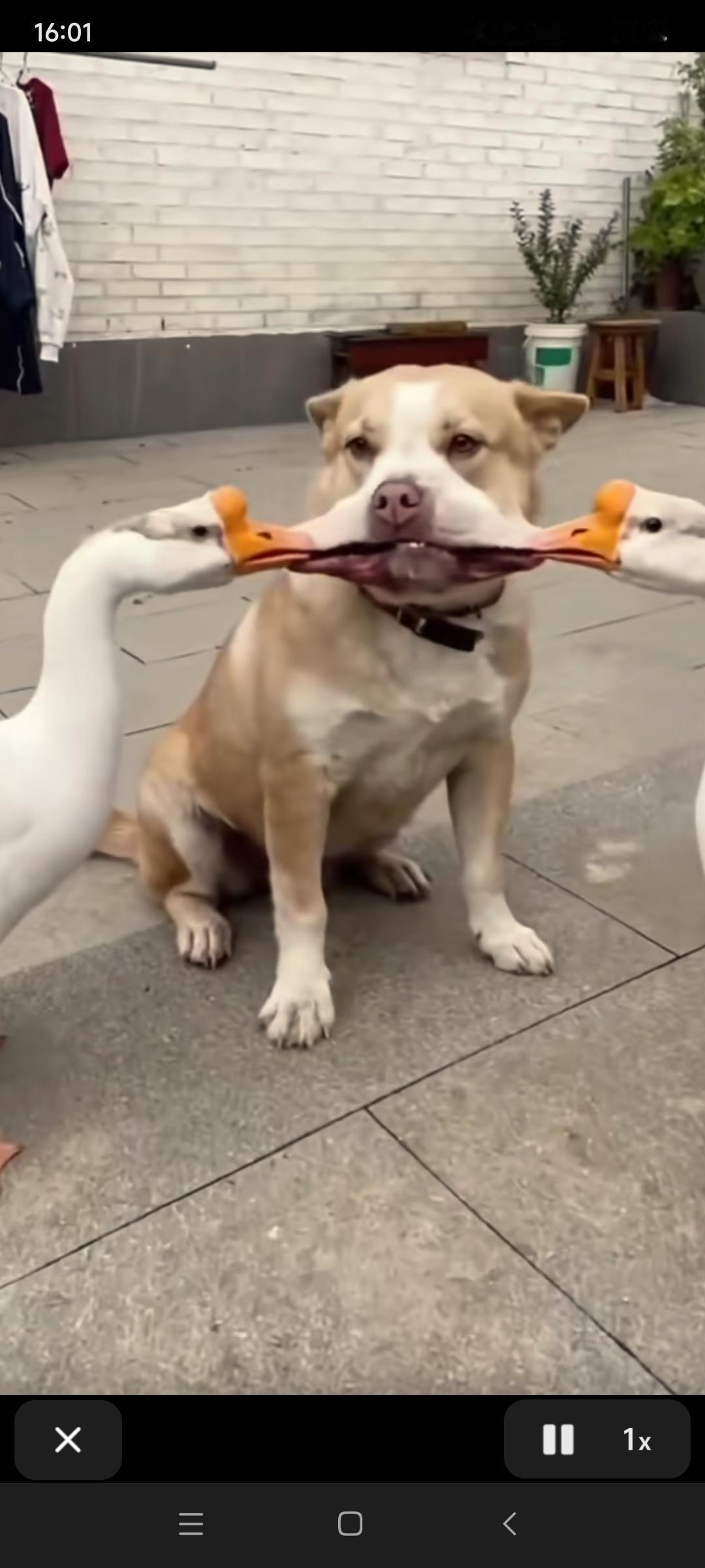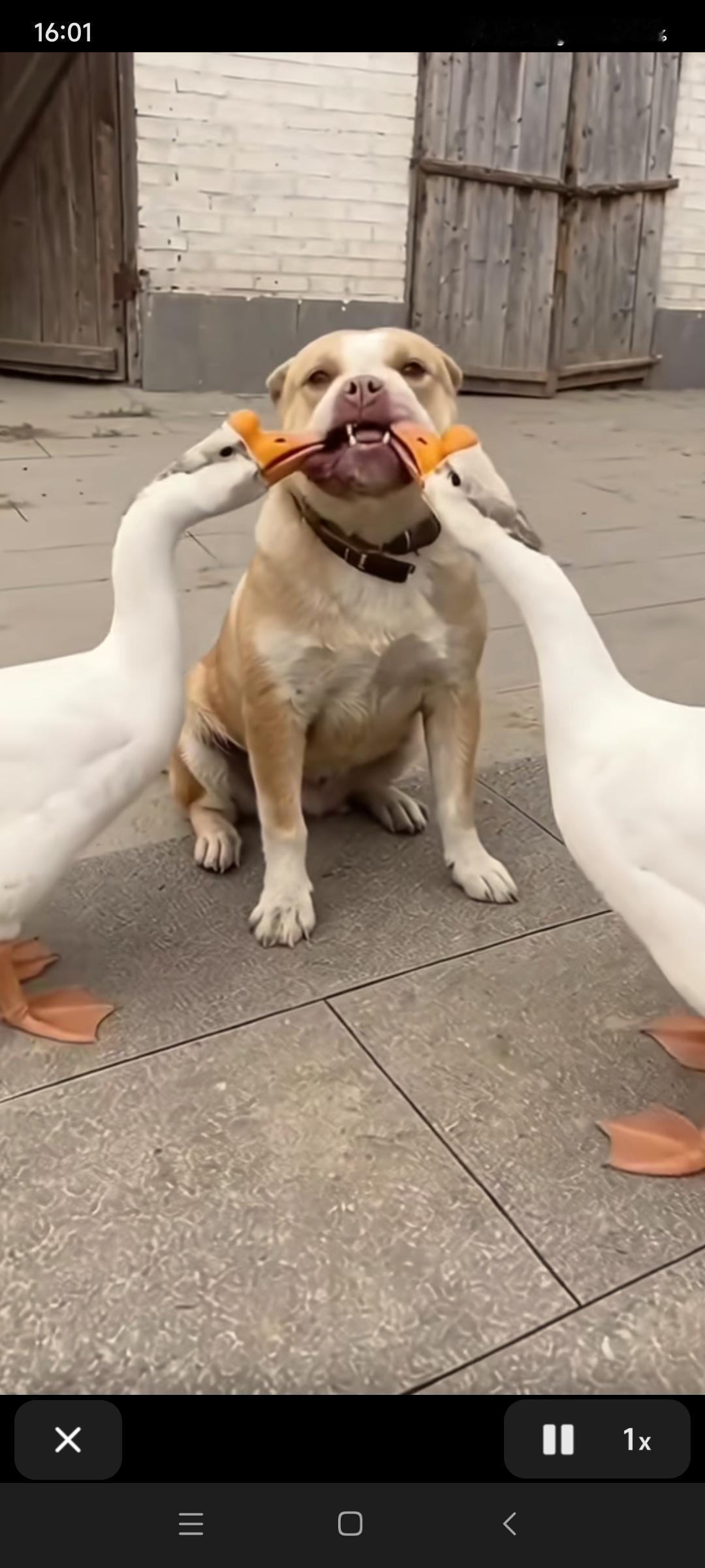 笑死我了!这是真的啊还是AI制作啊!如果是真的,这狗子被两个家鹅凌辱,估计死的心都有了。