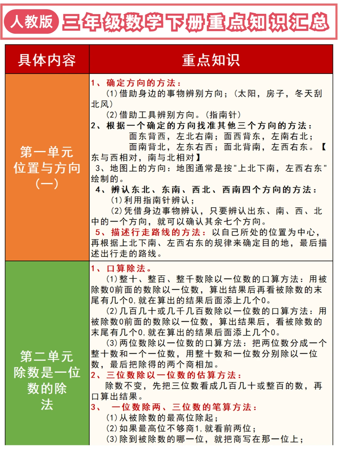 四下数学寒假17天打卡预习✅含知识点➕公式