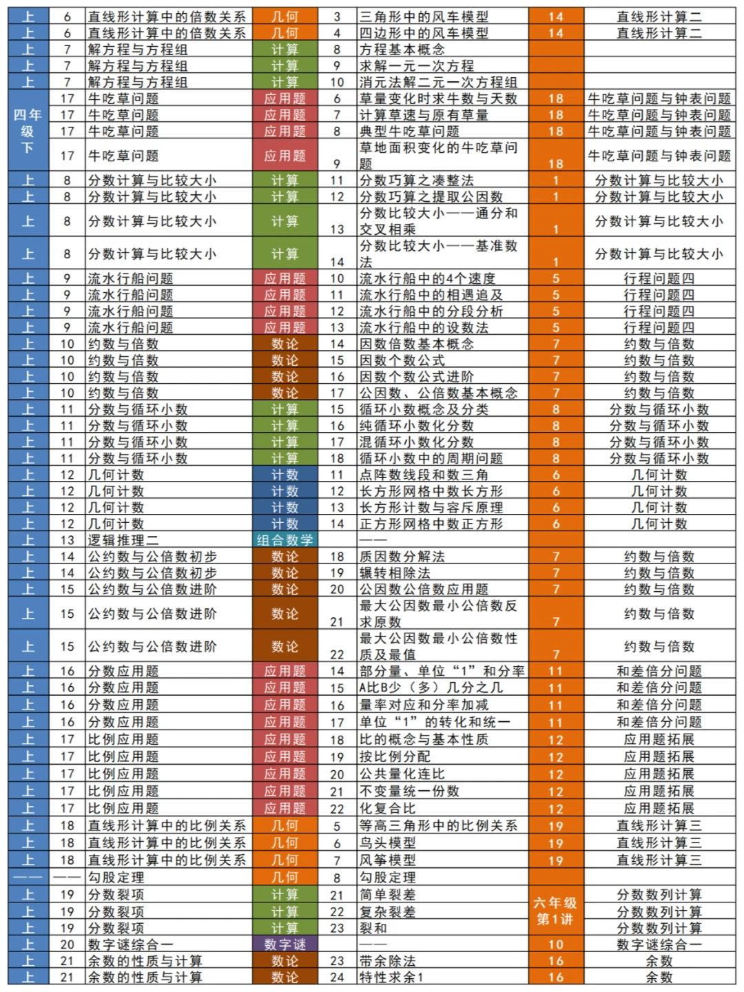 🎈小学五年级奥数:高思课本与高四导引、天天练(又名“乐乐课堂”)知识点对照索引✅
