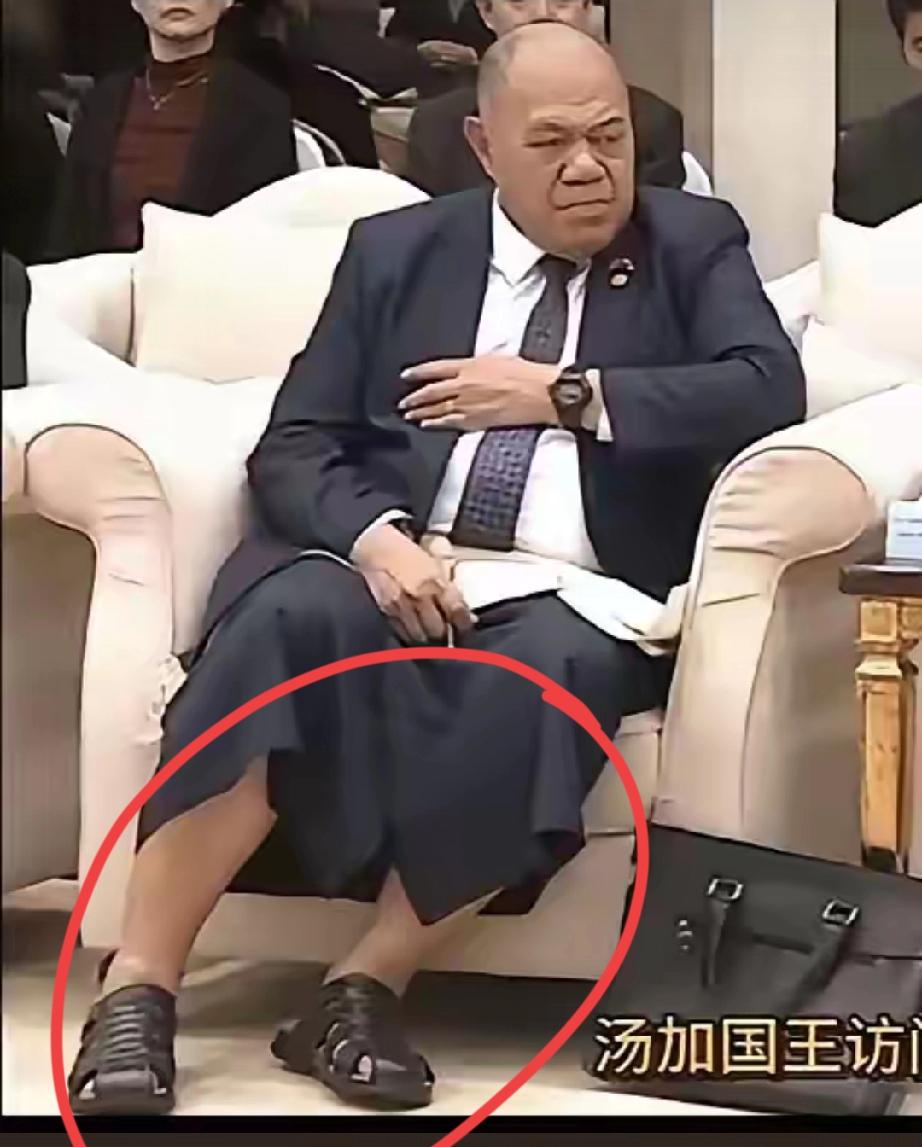 虽然贵为汤加王国贵族,但是人家穿的很朴素,生活很简朴,这不穿个拖鞋。
