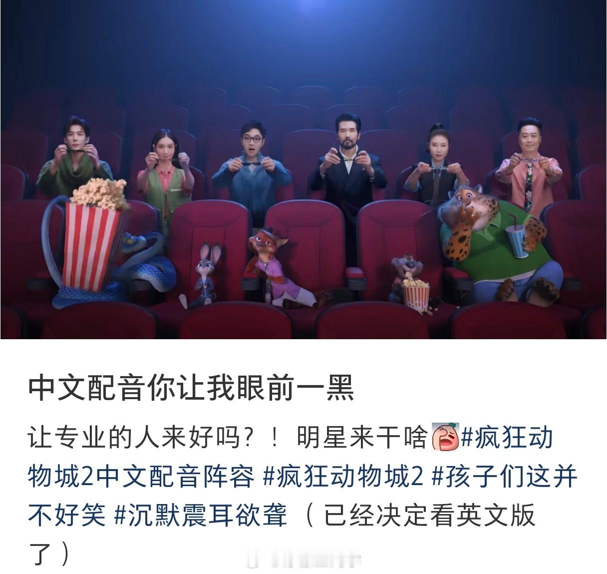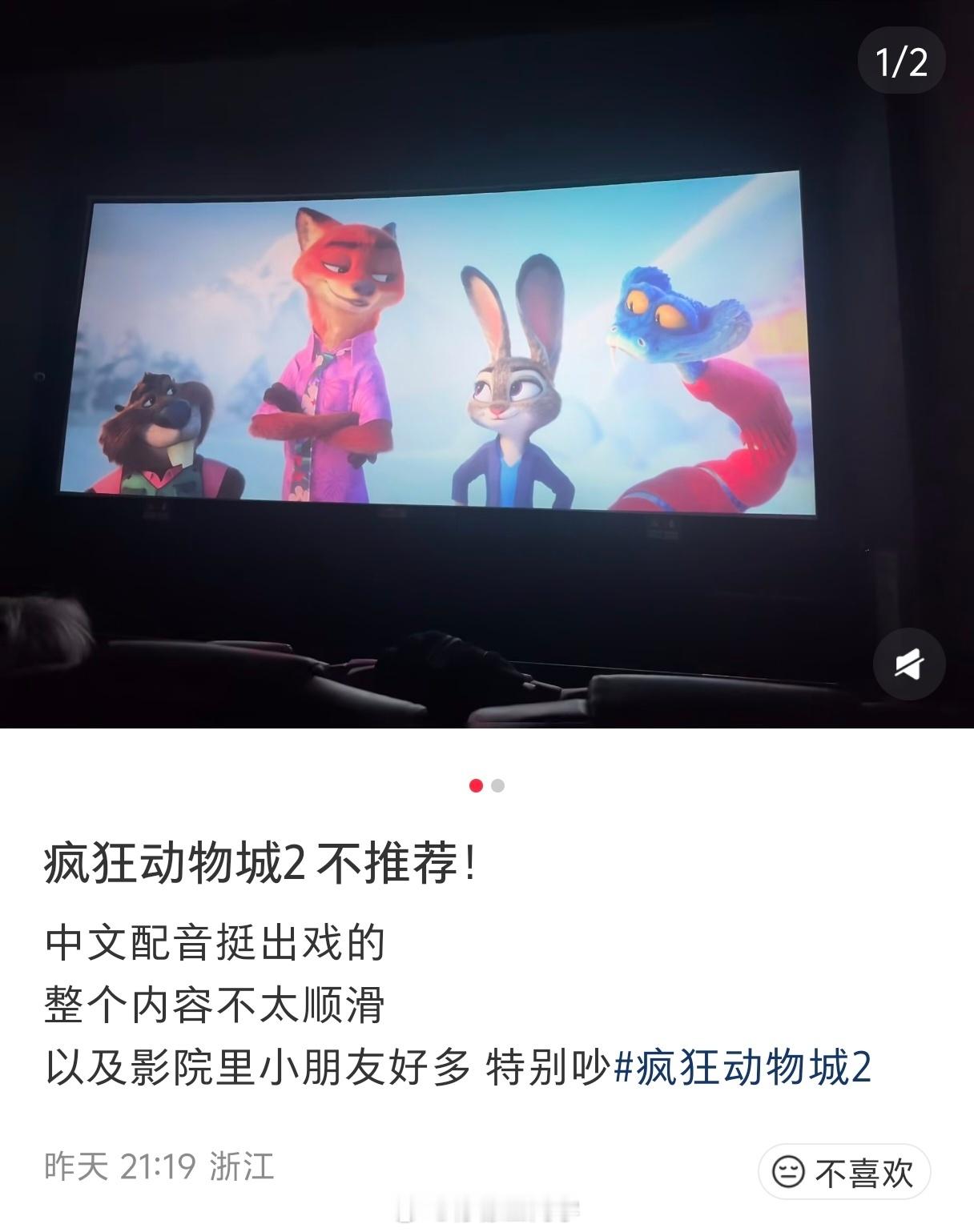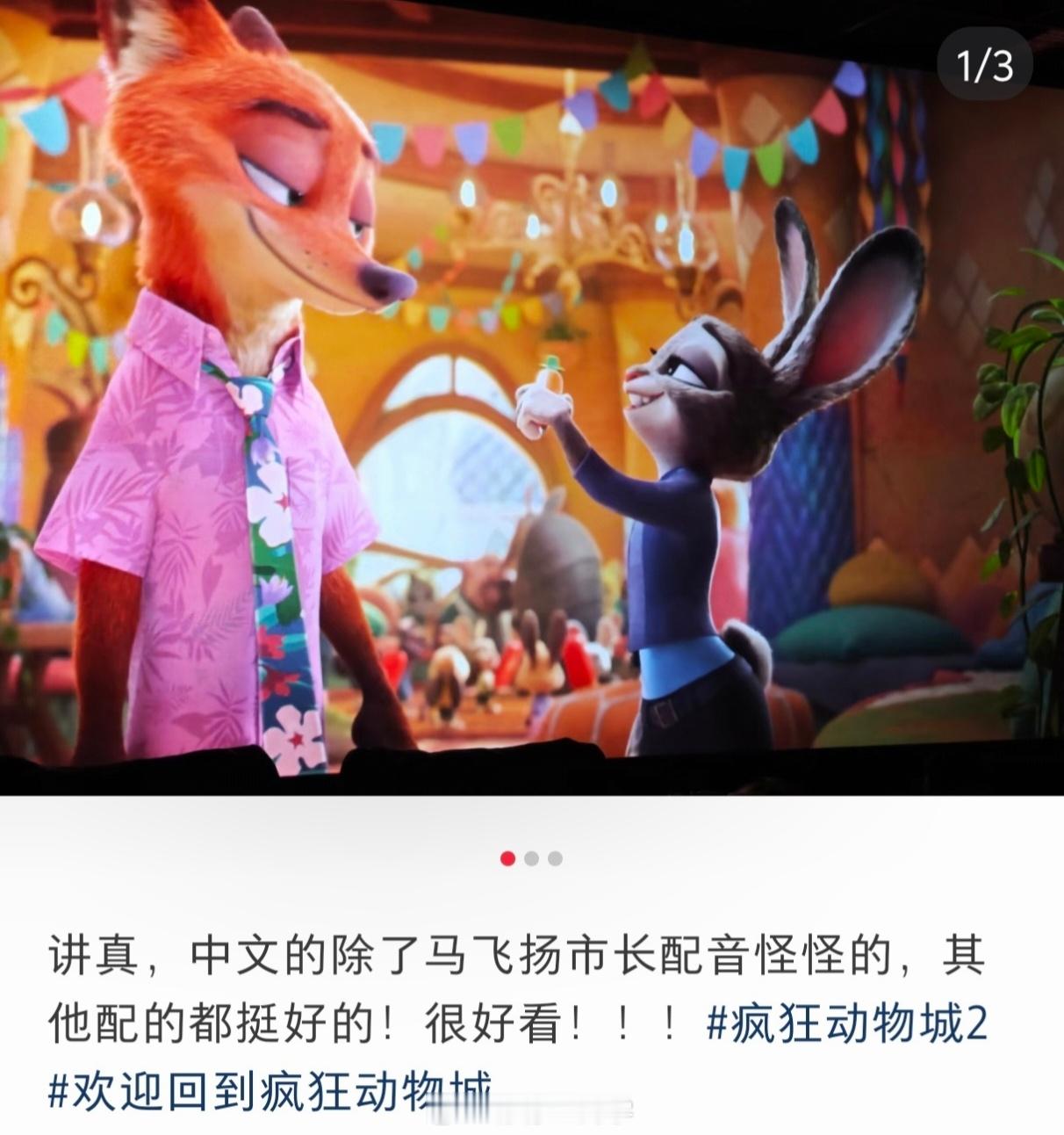 疯狂动物城2中配反馈看了一圈疯狂动物城2的评价,争议很大的就是配音,有说很出戏的,也有说很丝滑的其实我觉得这不是一个值得考虑的问题,原版的完全看不懂,会很累…只能选择配音版如果是有条件的,选择原版的会更原汁原味一点,有看了的吗?来说说感觉怎么样