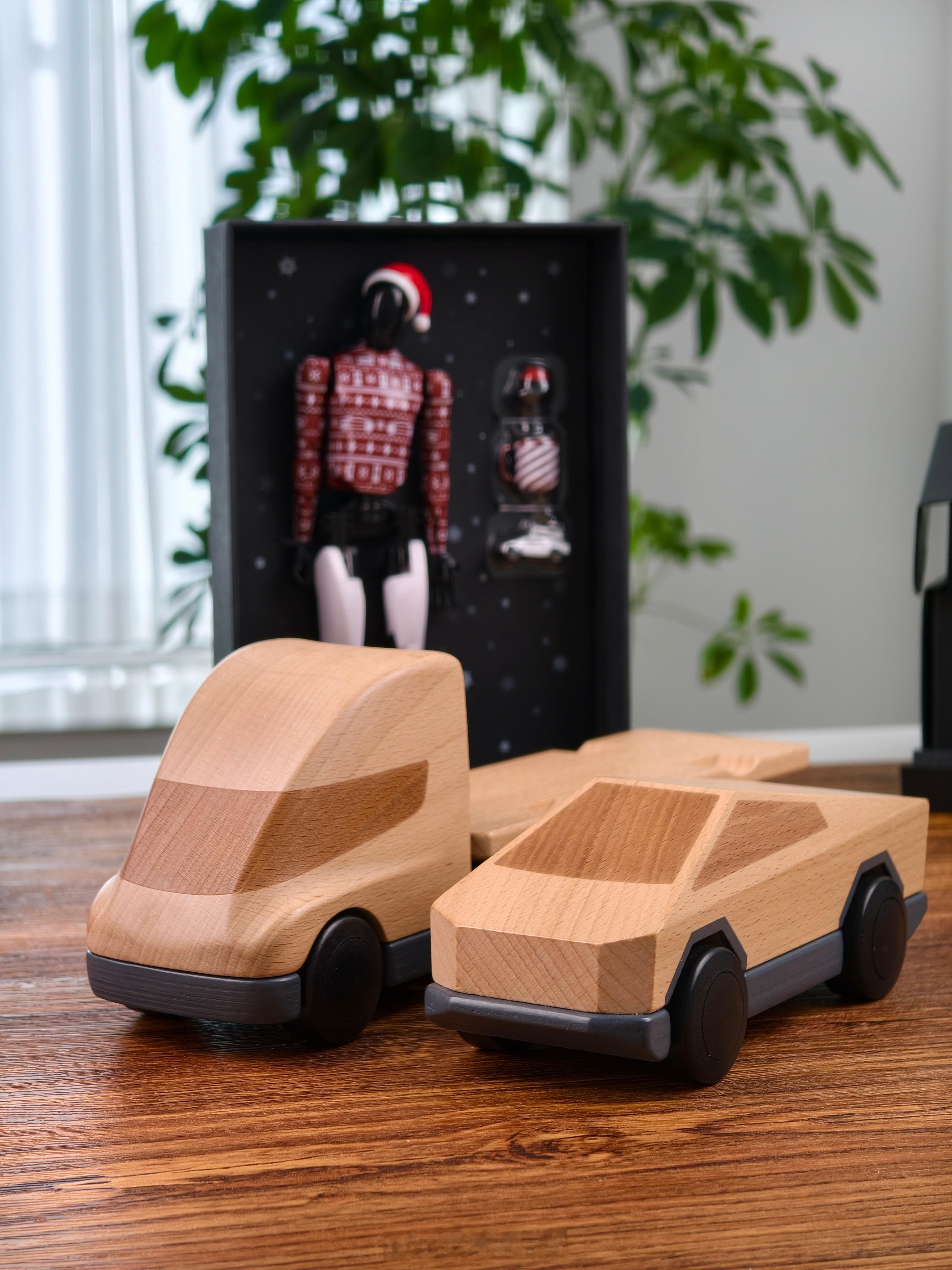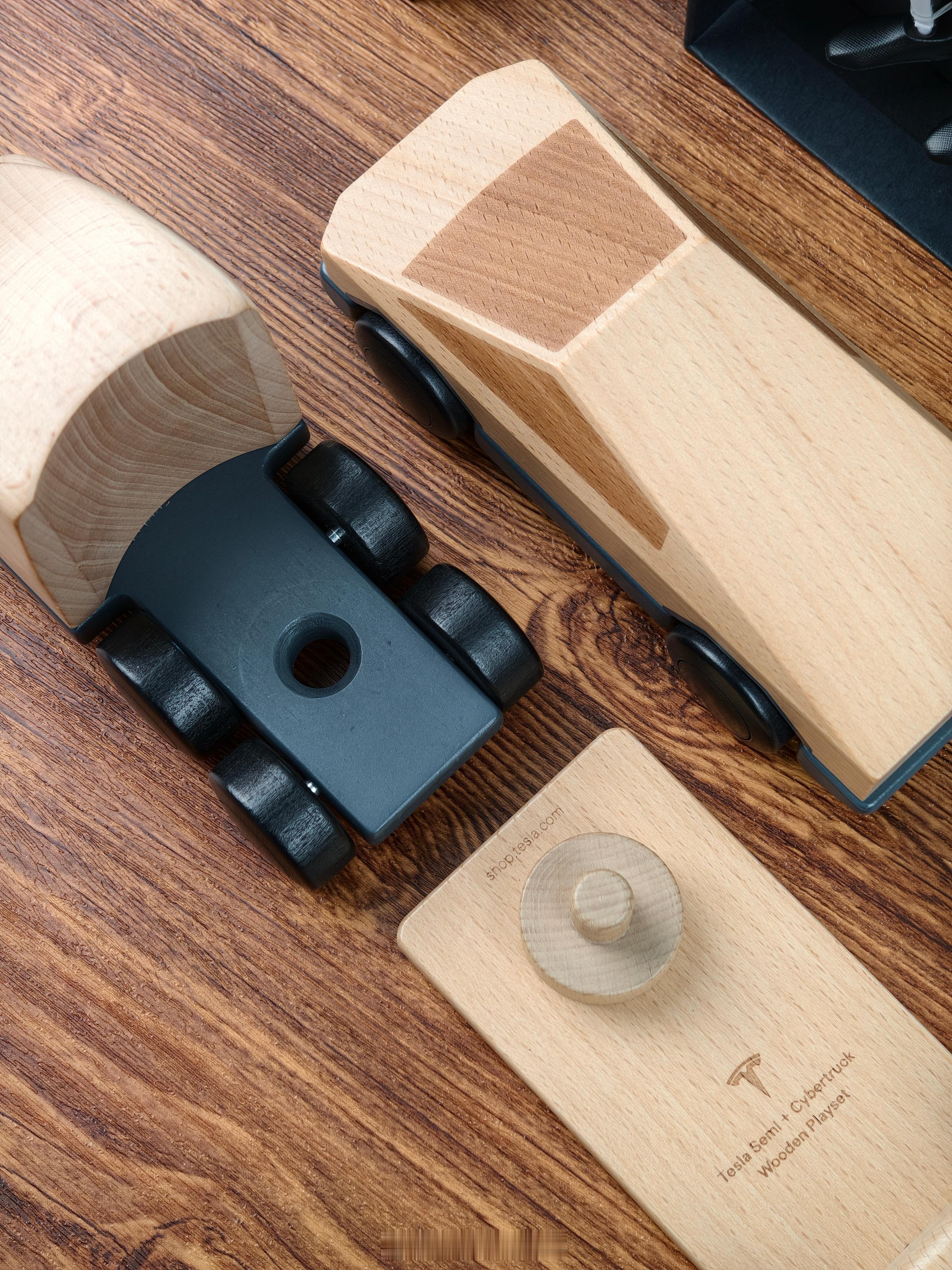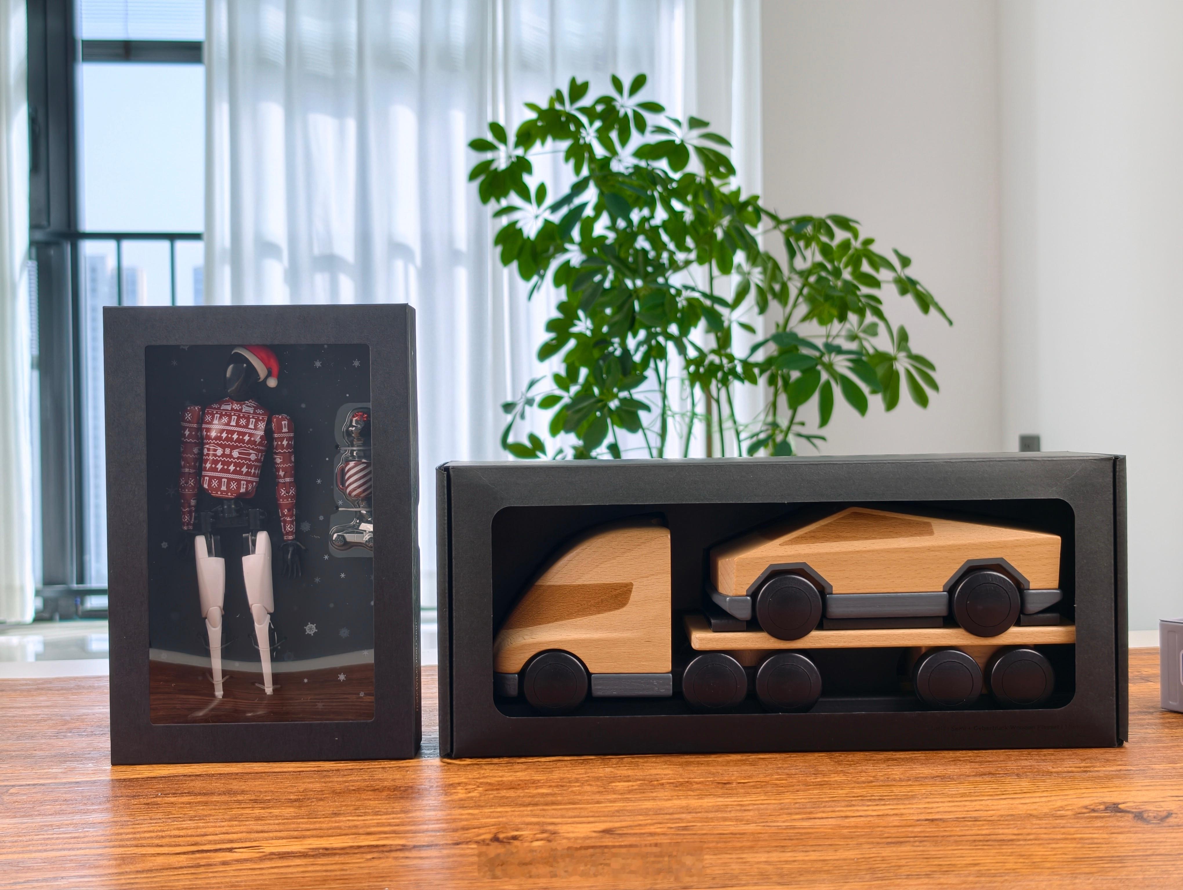 收到了特斯拉的圣诞节礼物🎁是一个穿着圣诞服的机器人、木质的Cybertruck和Semi不得不说这个木质的两个小车质感还真不错,分量也不轻,配合上这个小机器人,放在家里当摆件刚刚好