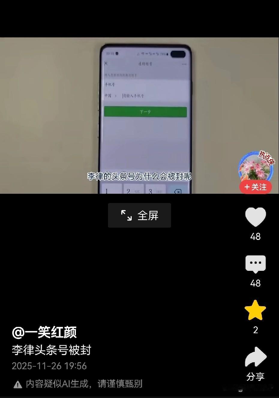 李圣老师头条号被封! 晚上刷头条, 看到一位账号叫“一笑红颜”的主播声称, 李圣