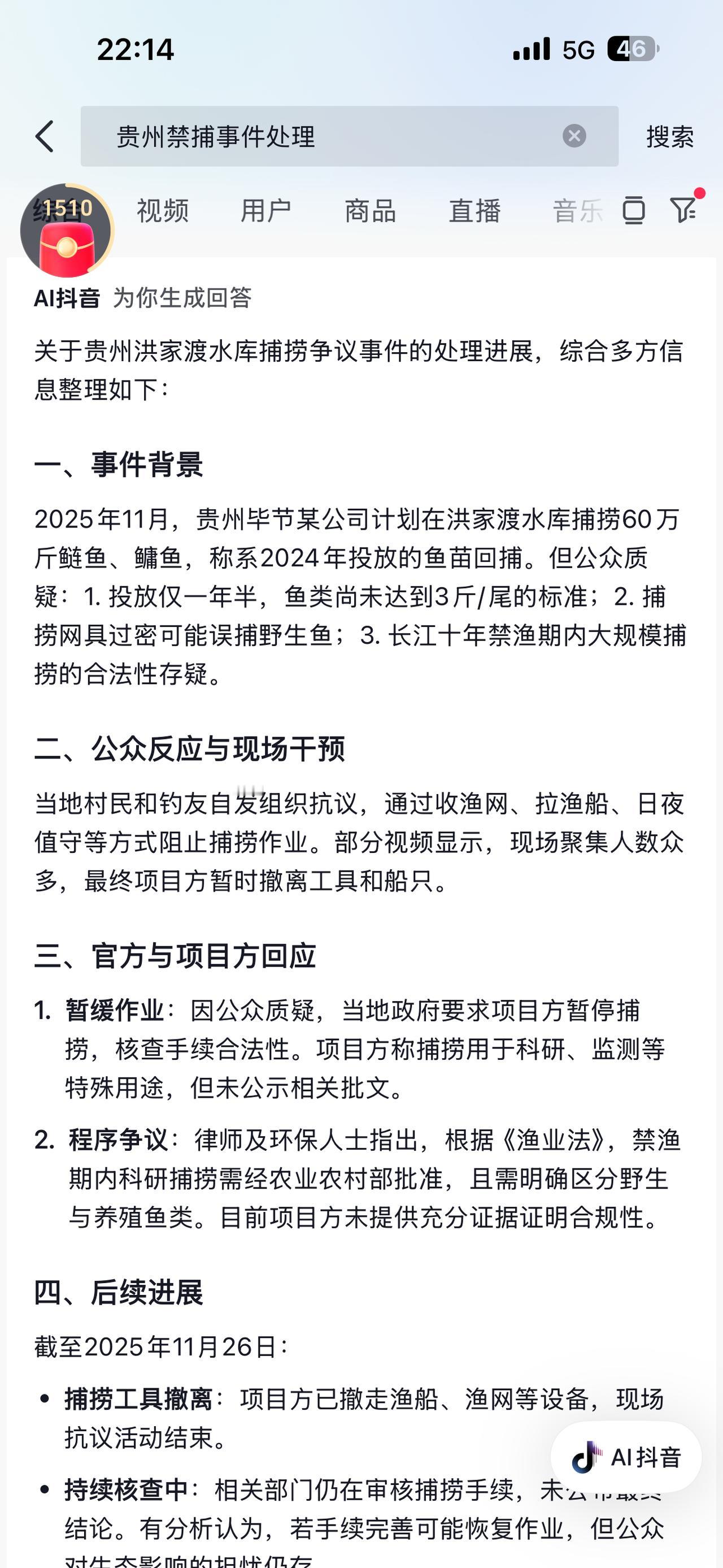 我的今日状态:😁轻松愉快 我这里的天气:☀️晴天 贵州禁补事件处理,2025年11月贵州毕节某公司计划在洪家渡水库捕捞60万斤鱼。系称2024年投放的育苗回趟。但公众质疑,仅投放一年半、鱼类尚未达成3斤/尾的标准。 针对此事,大家怎么看?洪家渡捕鱼