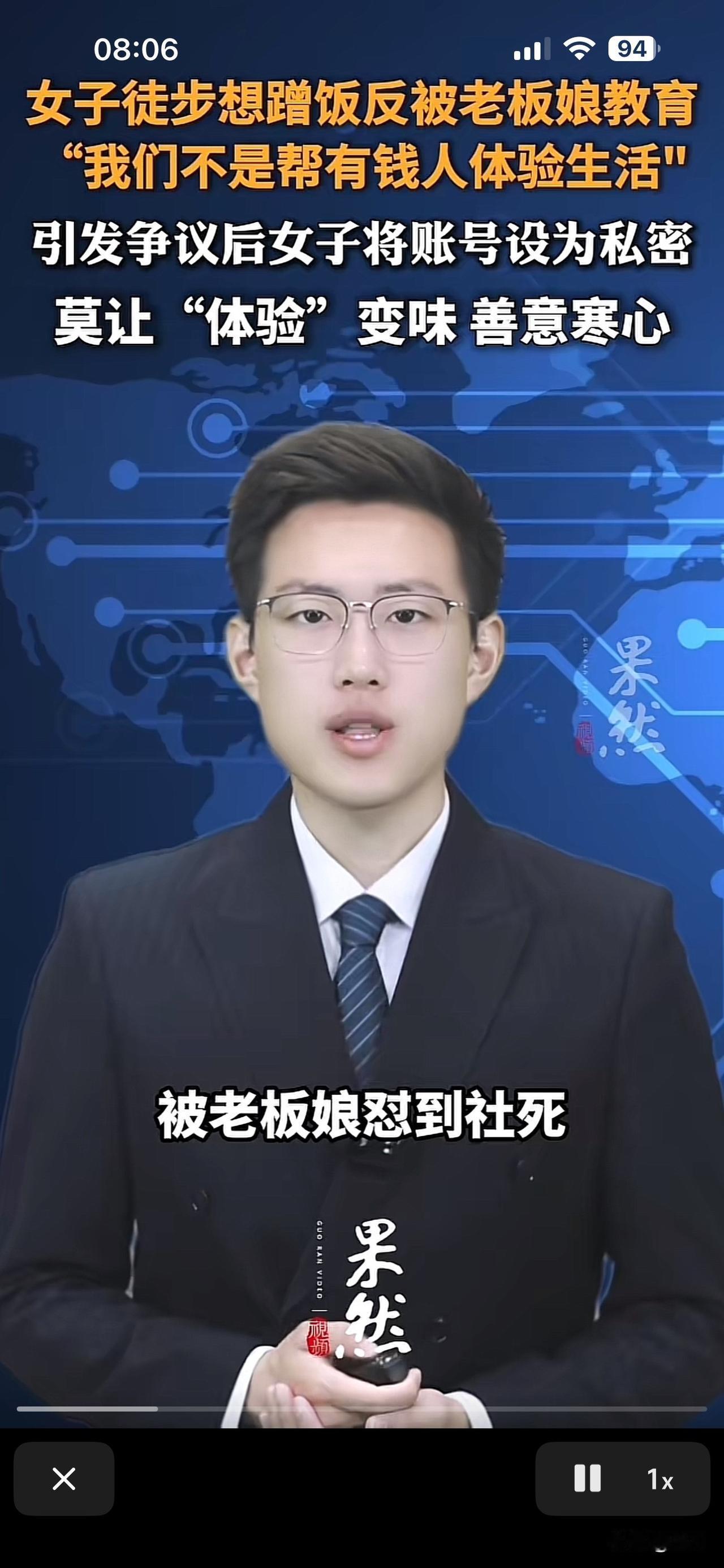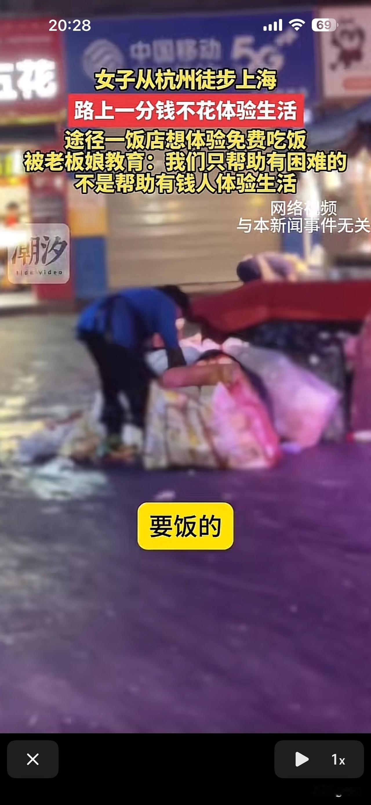 近期小编发现女子徒步从杭州-上海体验不花钱生活,途经一饭店想免费体验生活,结果被教育:我们只帮助有困难的X不是帮助有钱人体验生活 女子发视频后,被怼到账号变私密。针对此事,大家怎么看?