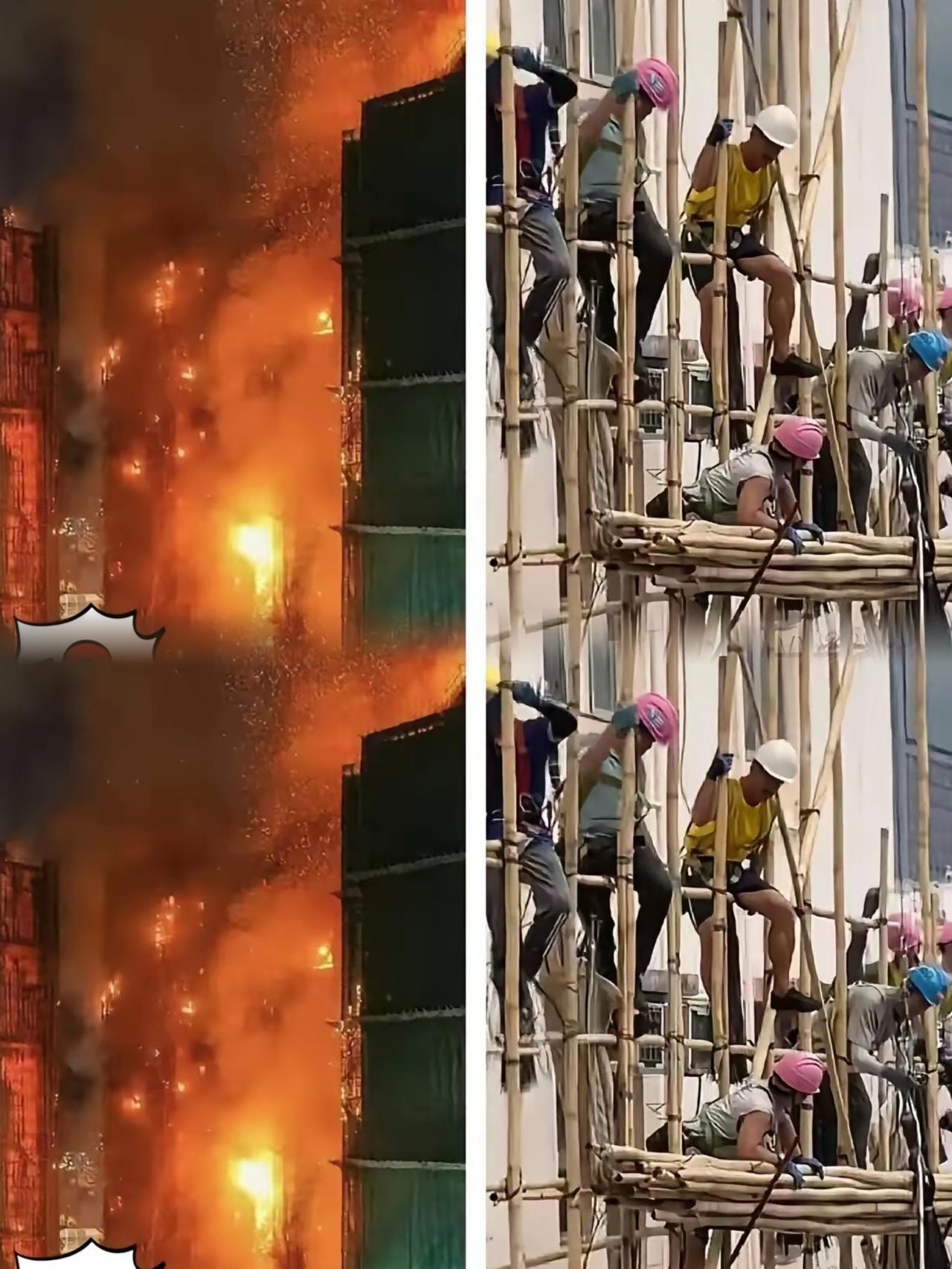 实际上就是竹子的问题,如果脚手架是钢管那么就算安全网烧起来也没多大事。这些用于搭建脚手架的竹子都是没啥水分的特别容易燃烧。