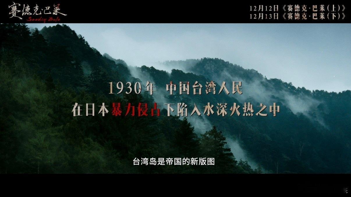 电影赛德克巴莱12月12日上映 谁懂啊!上下部接连上映太爽了!12日、13日每天都有高能,台湾同胞硬刚侵略的血性超戳人,全程燃到起鸡皮疙瘩,约上朋友去影院!