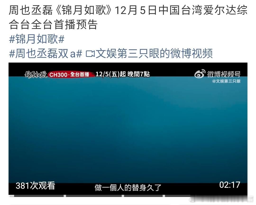 丞磊锦月如歌要在台湾上🌟了,即使是连播剧也能够在平台播放量年榜第三,肖珏好棒