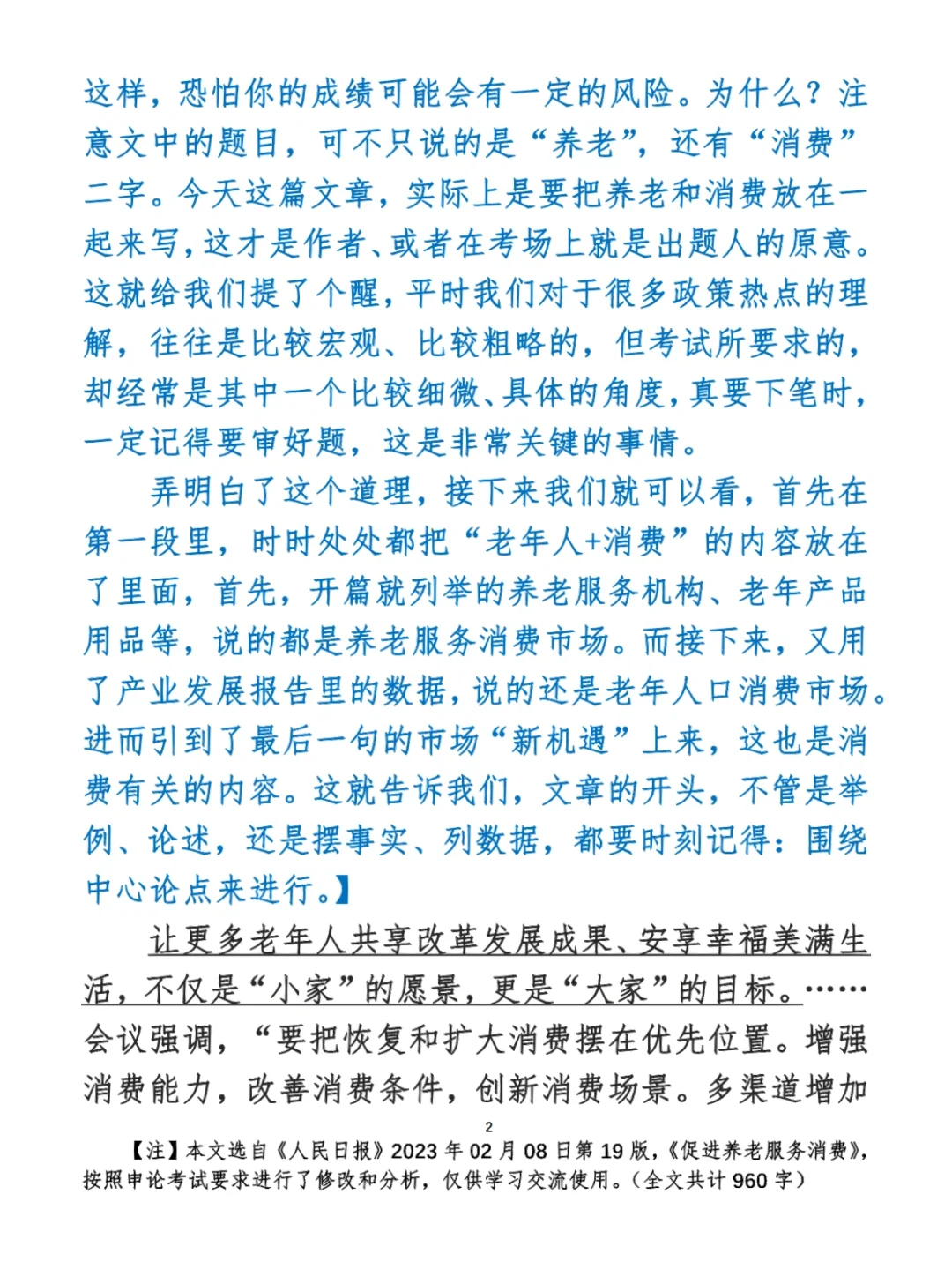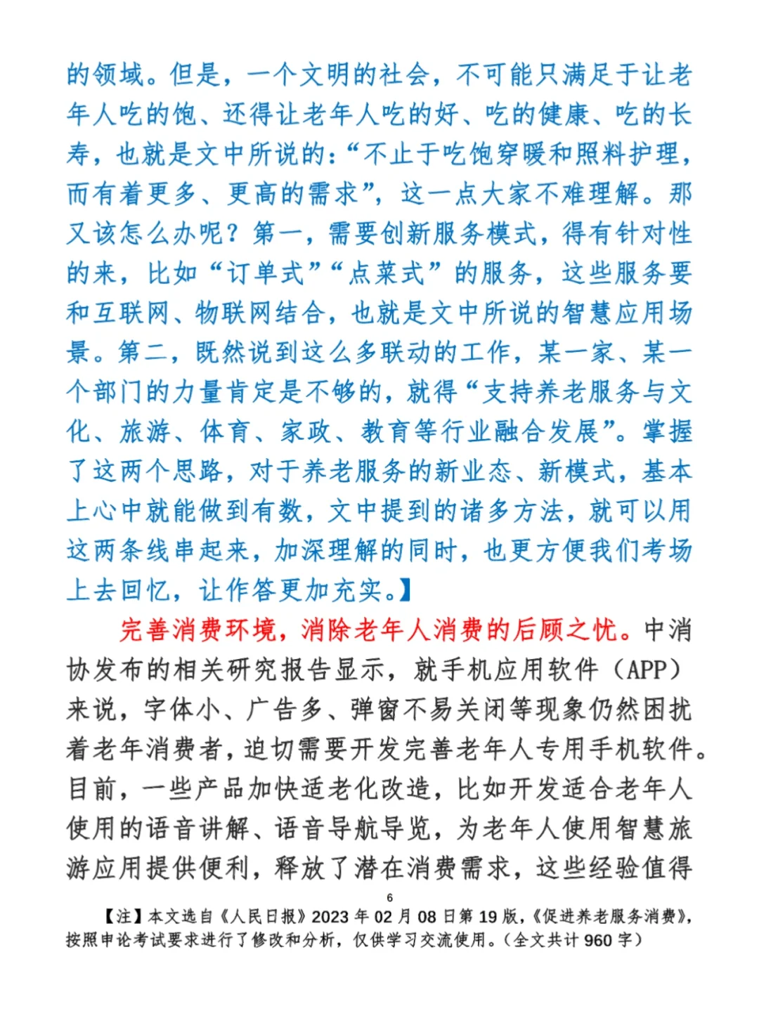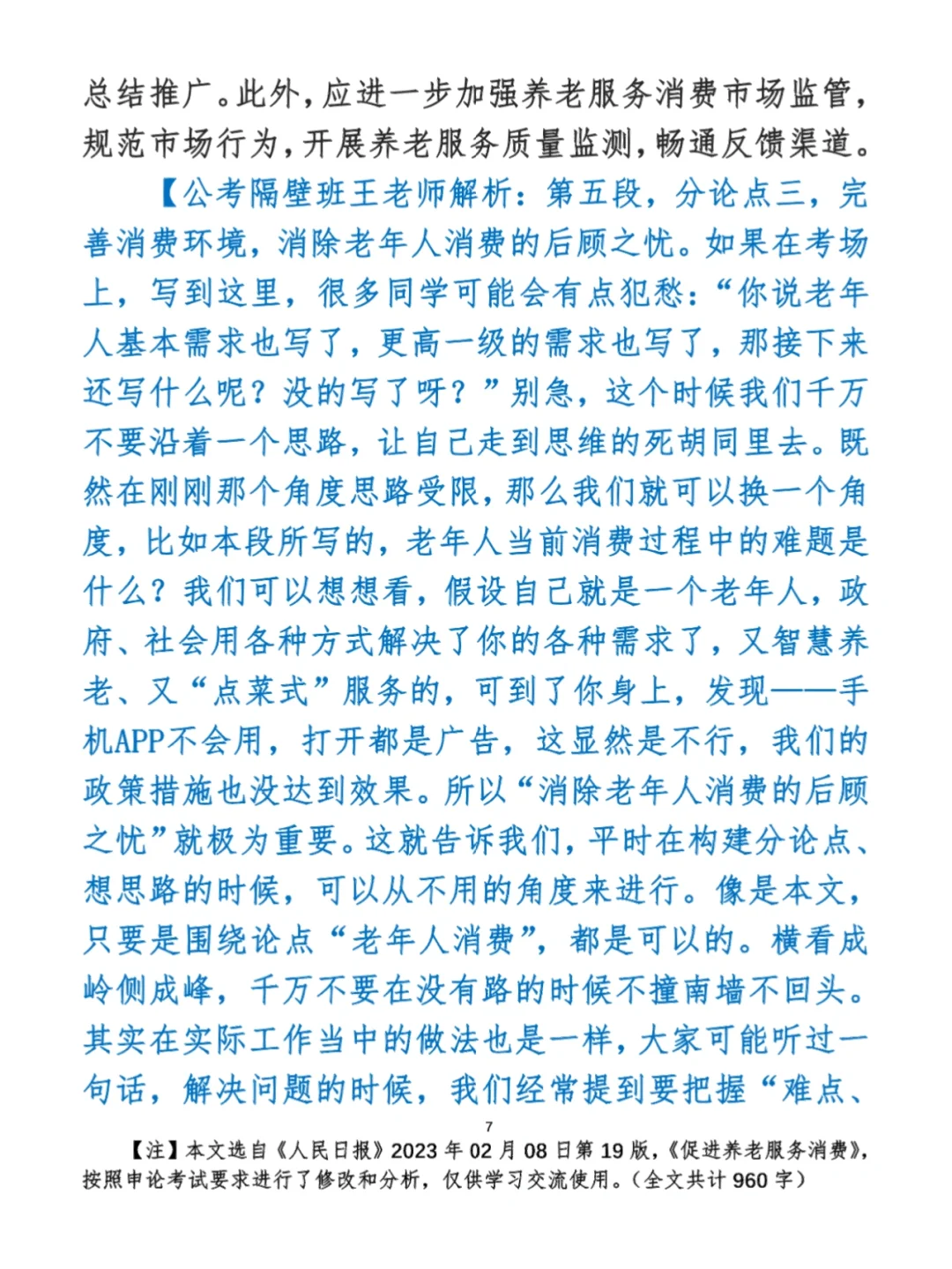 今日打卡作业: 1. 选一句你最喜欢的金句 2. 抄写全文红字+划线部分内容 3. 写完后在留言区打卡 ⭐️ ⭐️ ⭐️ ⭐️ ⭐️ ⭐️ 如何抄写:每天的抄写文章以图片形式发在“公考隔壁班王老师”账号,红色字是重点句和结构句,黑色字是正文,蓝色字是解析,大家抄写时不必抄蓝色字。建议先通读全文(包括蓝色解析部分),做到心中有数再开始抄写,效果会更好。 关于文章:抄写文章来源于人民日报,但每篇文章我都根据申论考试要求进行了修改,主要集中在四个方面:一是重写或修改开头、结尾;二是统一段首句句式结构;三是调整段落字数,使文章结构更均衡;四是简化复杂长难句,使之更具可模仿性。每篇文章修改幅度不同,无论修改多少,都是基于申论考试要求,毫无对人民日报文章品评之意。(此处致敬人民日报) 关于解析:我会在文章每段后面加一段蓝色字的解析,是我自己在抄写时的感悟,篇幅时间有限,不能面面俱到,但求重点突出。如果你有其他感悟,也希望能在评论里分享,我们相互学习、共同进步。 ⭐️ ⭐️ ⭐️ ⭐️ ⭐️ ⭐️ 这里是公考隔壁班王老师独创的“每天半小时・申论80分”抄写团,欢迎加入我们!
