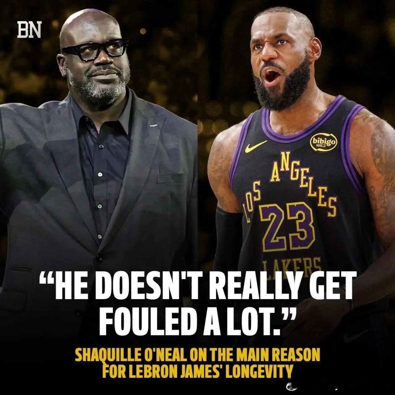 奥尼尔关于詹姆斯的职业生涯能维持这么长久的原因:“他确实没什么遭受到恶意犯规。”