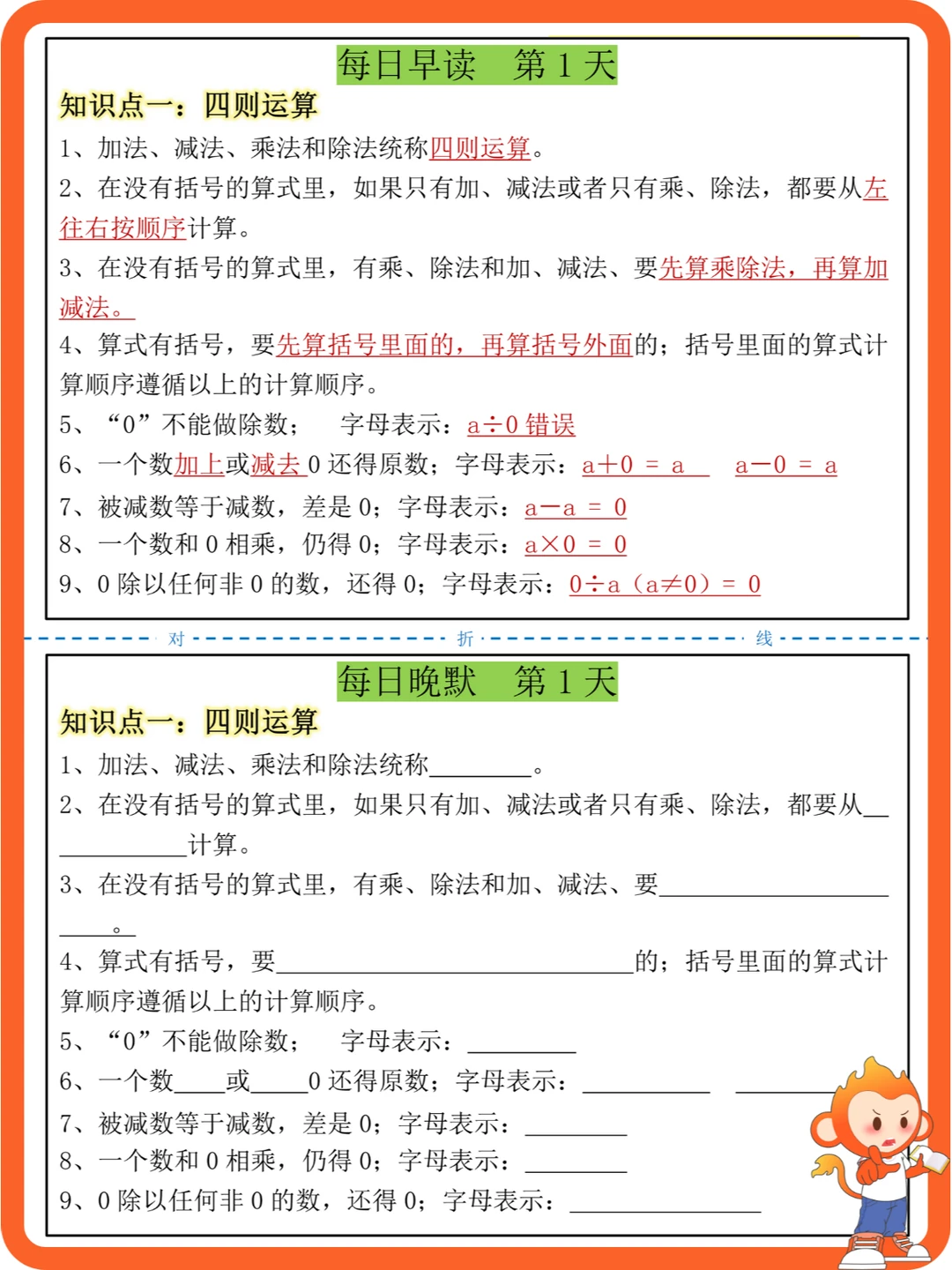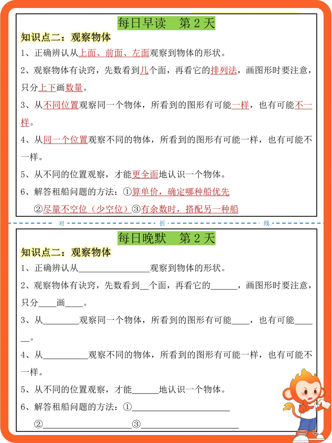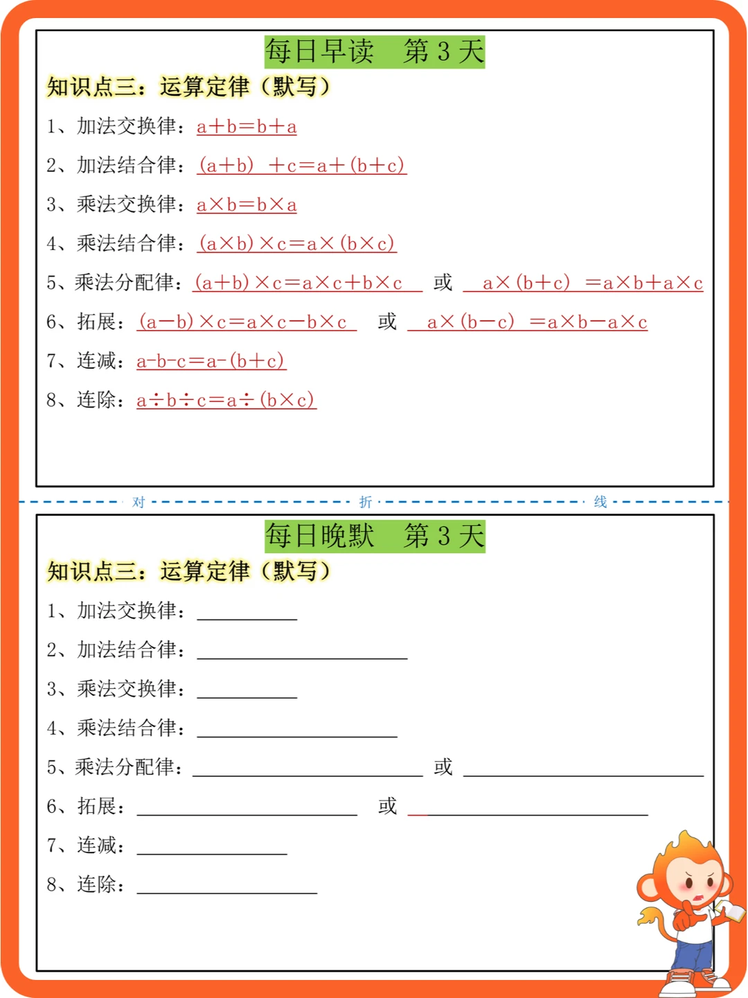 四下数学寒假17天打卡预习✅含知识点➕公式