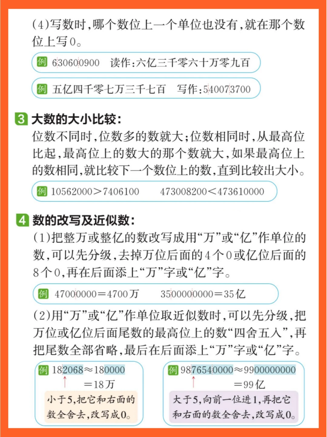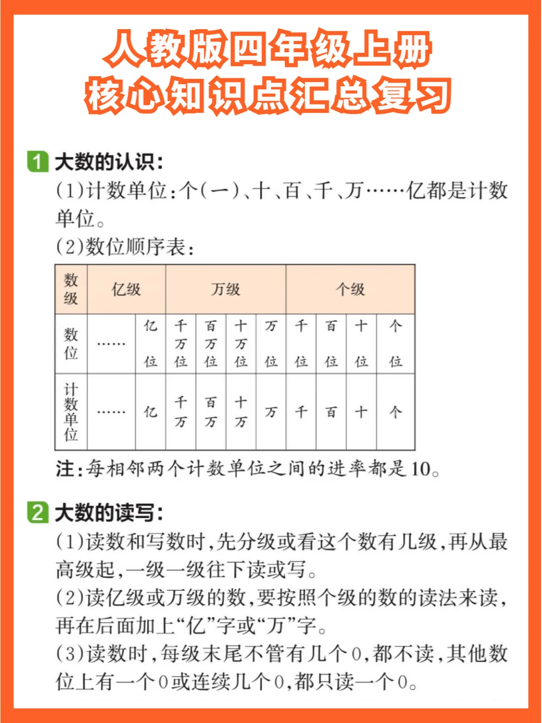 第1️⃣单元《大数的认识》:包括计数单位、数位顺序表、大数的读写、比较大小、数的改写和求近似数等内容。