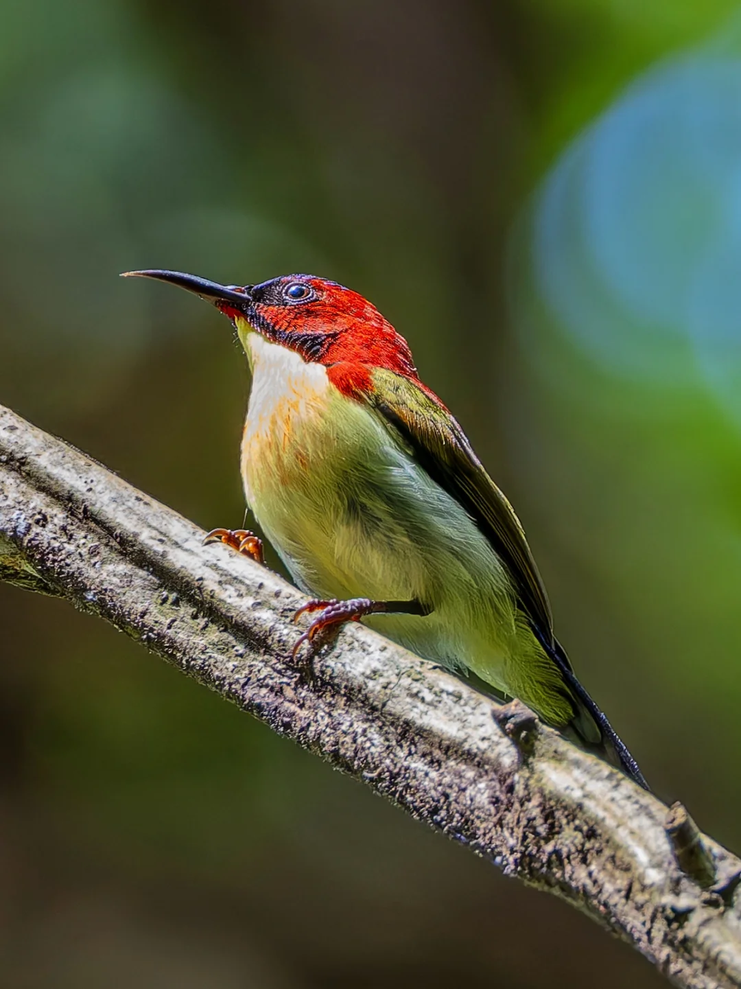原创拍摄于2025.10 丽色太阳鸟,Lovely Sunbird,雀形目太阳鸟科太阳鸟属的鸟类。英文名就叫“Lovely”,名字真是直白的“可爱”。这种太阳鸟是巴拉望特有种。 丽色太阳鸟雄鸟有醒目的金属紫色冠羽,鲜红色的头颈背和上背部,亮黄色的下背和臀部,蓝绿色的上尾覆羽和渐变的尾巴。非常漂亮,当得起“可爱”的名字。 就是太小,动的太快,不好拍啊。