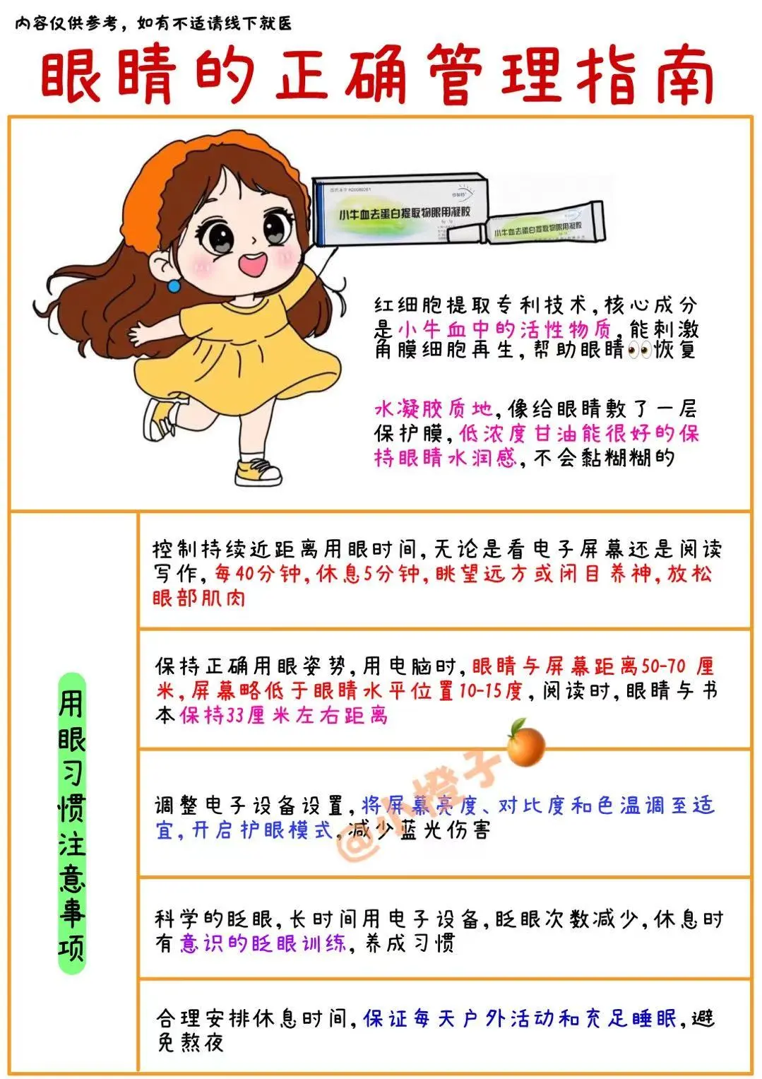 这里小橙子做了功课整理了一份眼睛的✔管理指南!请查收哦!
