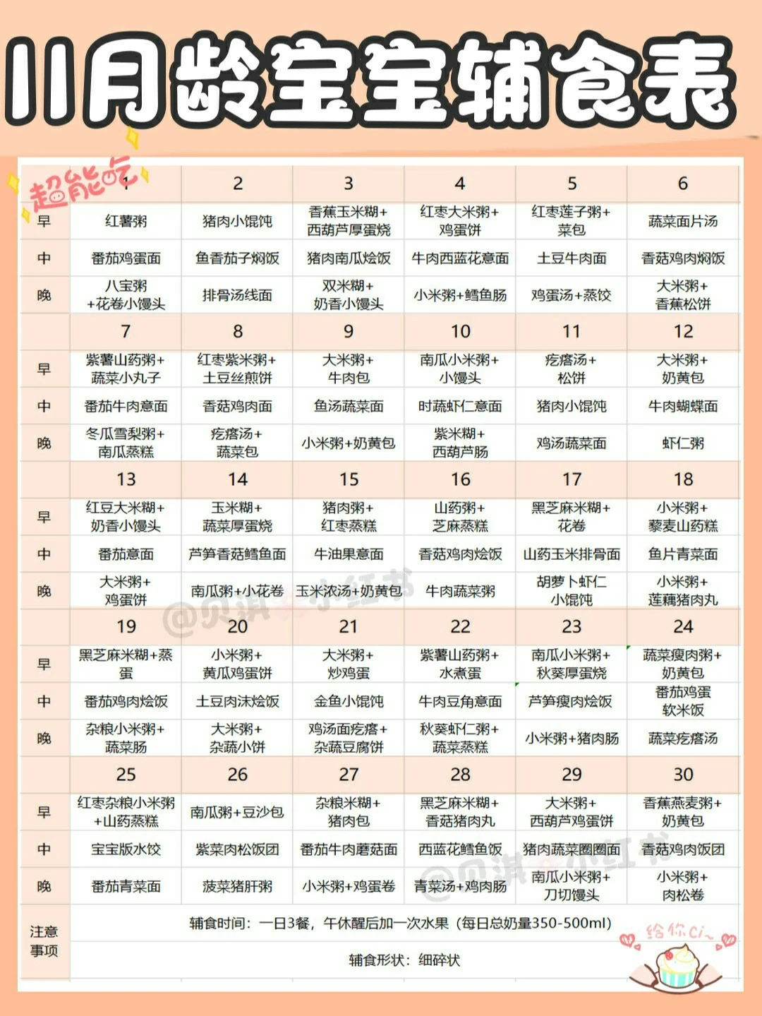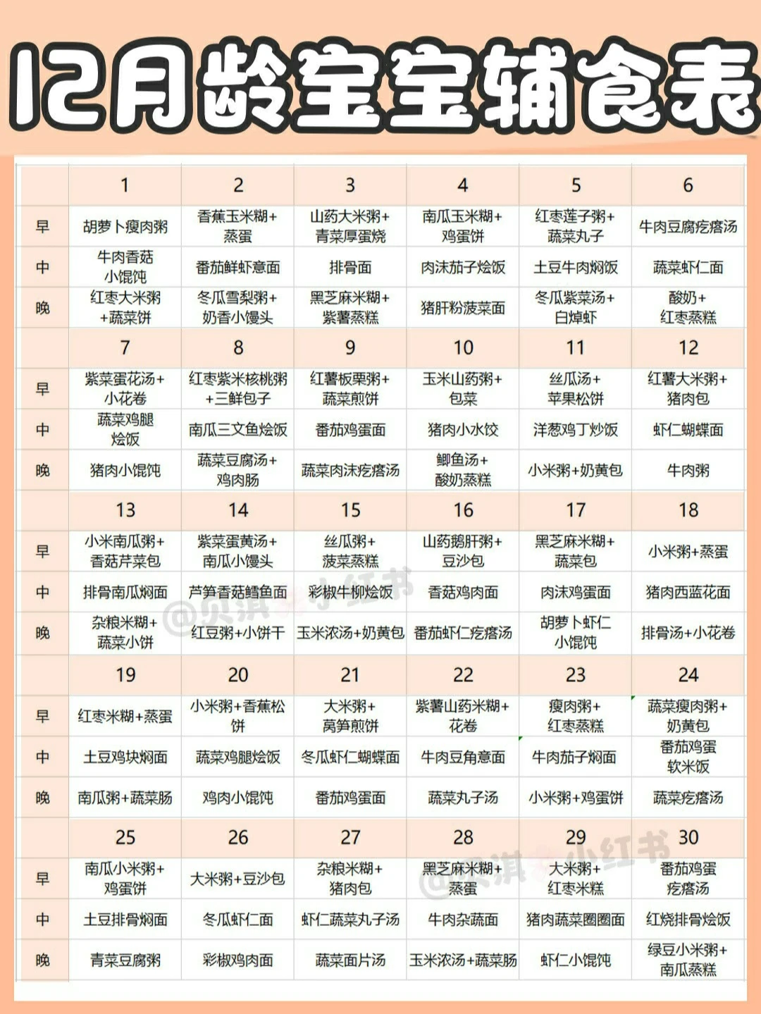 很多妈妈表示还不得要领,今天整理一份6-12月龄宝宝辅食表,给大家参考一下