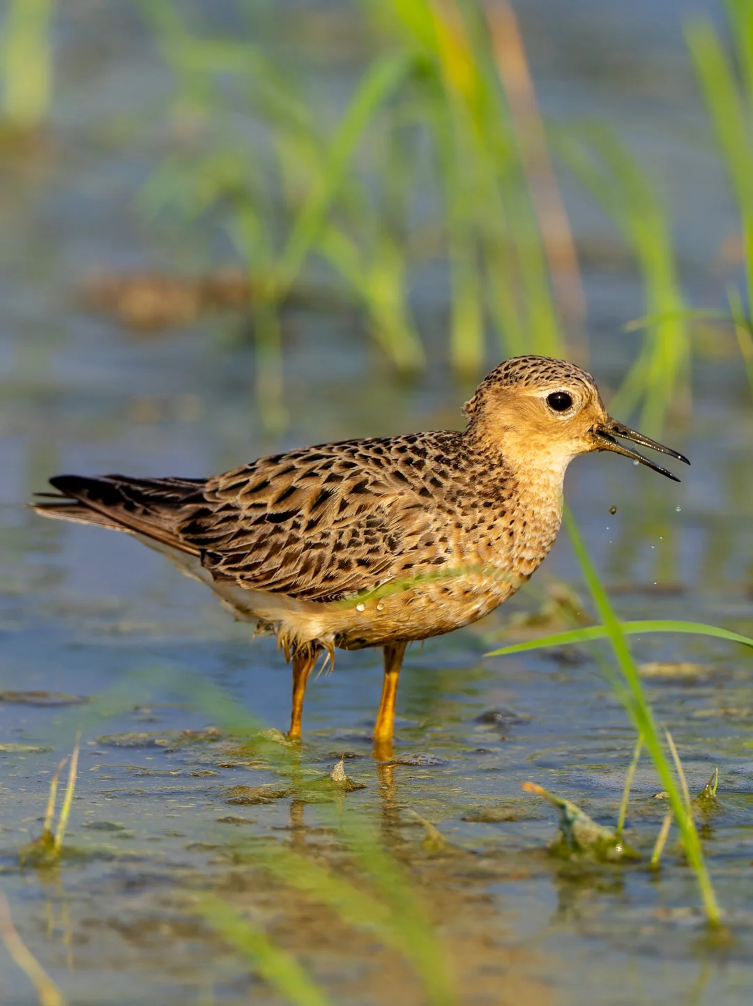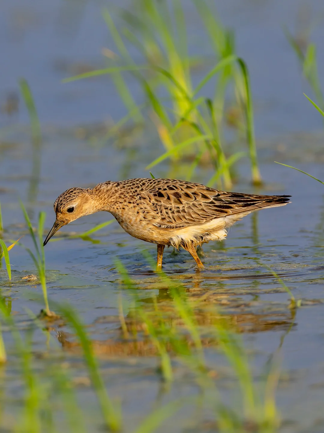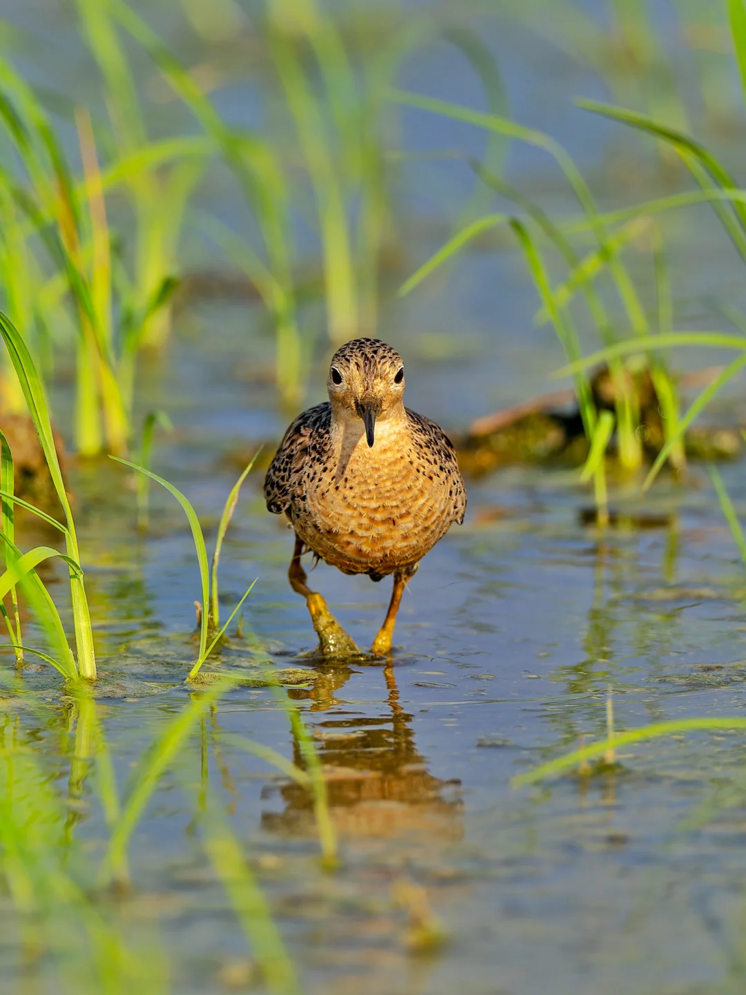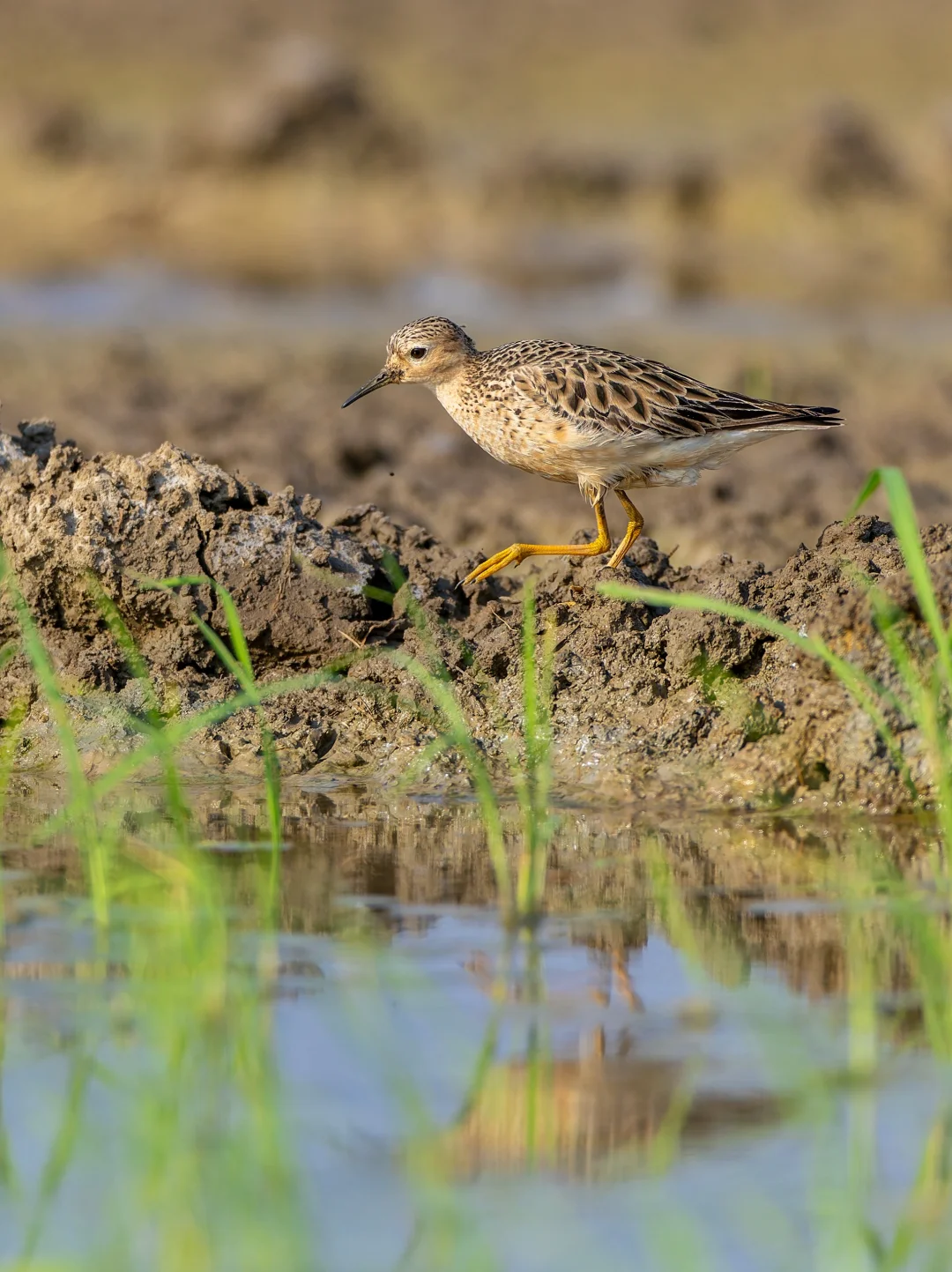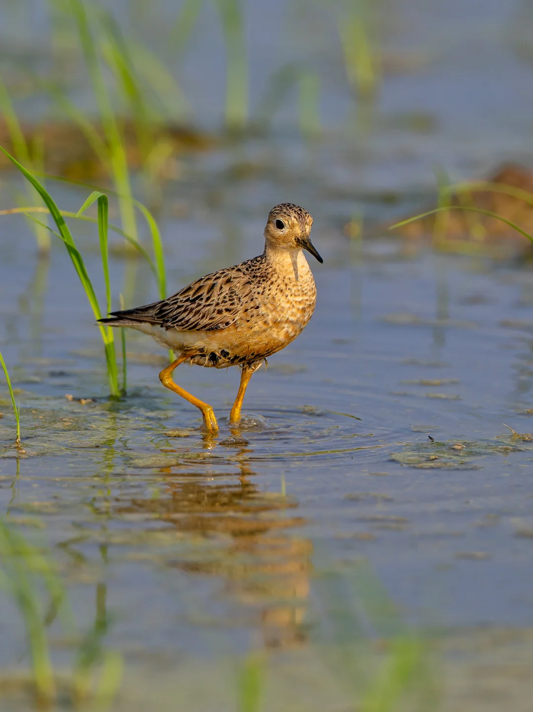 黄胸滨鹬,又叫饰胸鹬,Buff-breasted Sandpiper,鸻形目丘鹬科滨鹬属。这种小鸟通常被认为是主要分布在在美洲的,他们繁殖于北极的冻土地带,然后会途经北美中央地带迁徙到南美过冬,平时非常少能够涉足亚洲。在国内能够记录到黄胸滨鹬的记录是非常少的。