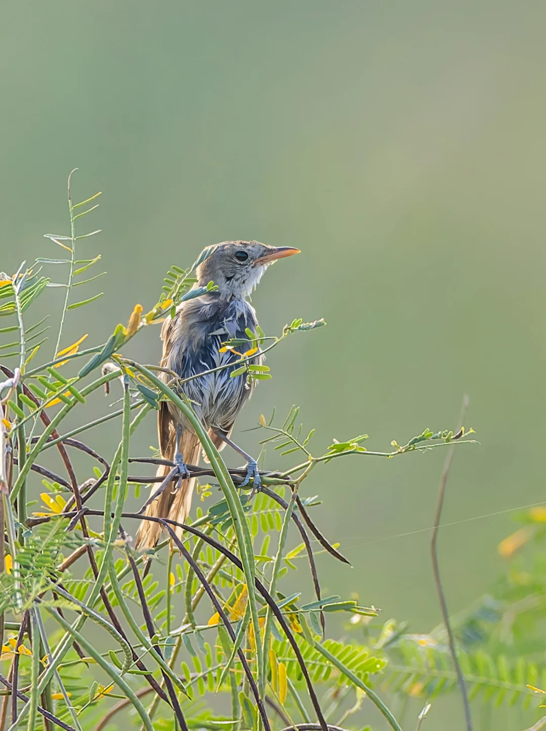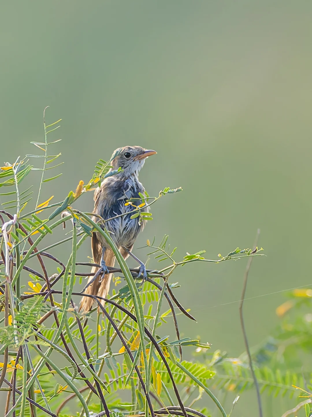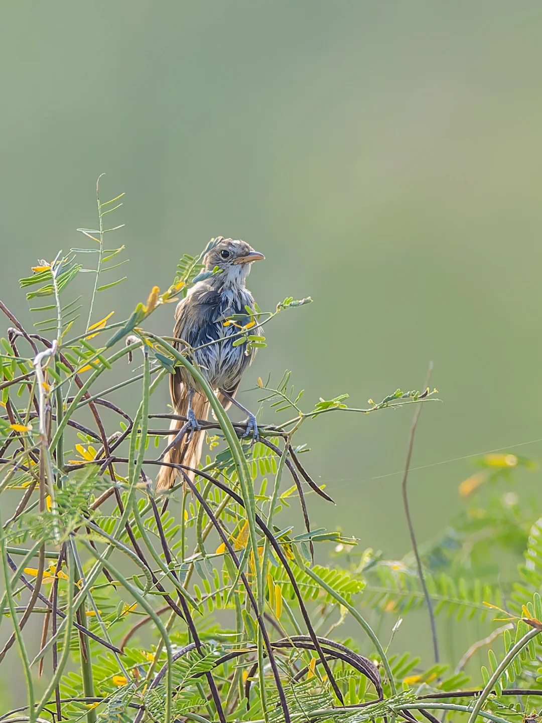 厚嘴似乎每年都会到深圳来,去年秋季在光明田园找了两天没找到。这次在田园找了一个下午空军后,昨天早上,一大早前往,终于在7:30看到了它在枝头站了几秒。因为感觉它一直在灌丛下部窜来窜去,清晨灌木丛里全是露水,湿漉漉的,导致整个身体都弄湿了,毛色看起来一片狼藉,像是刚洗了澡,一点也不蓬松。不过那个嘴确实还是挺厚的。