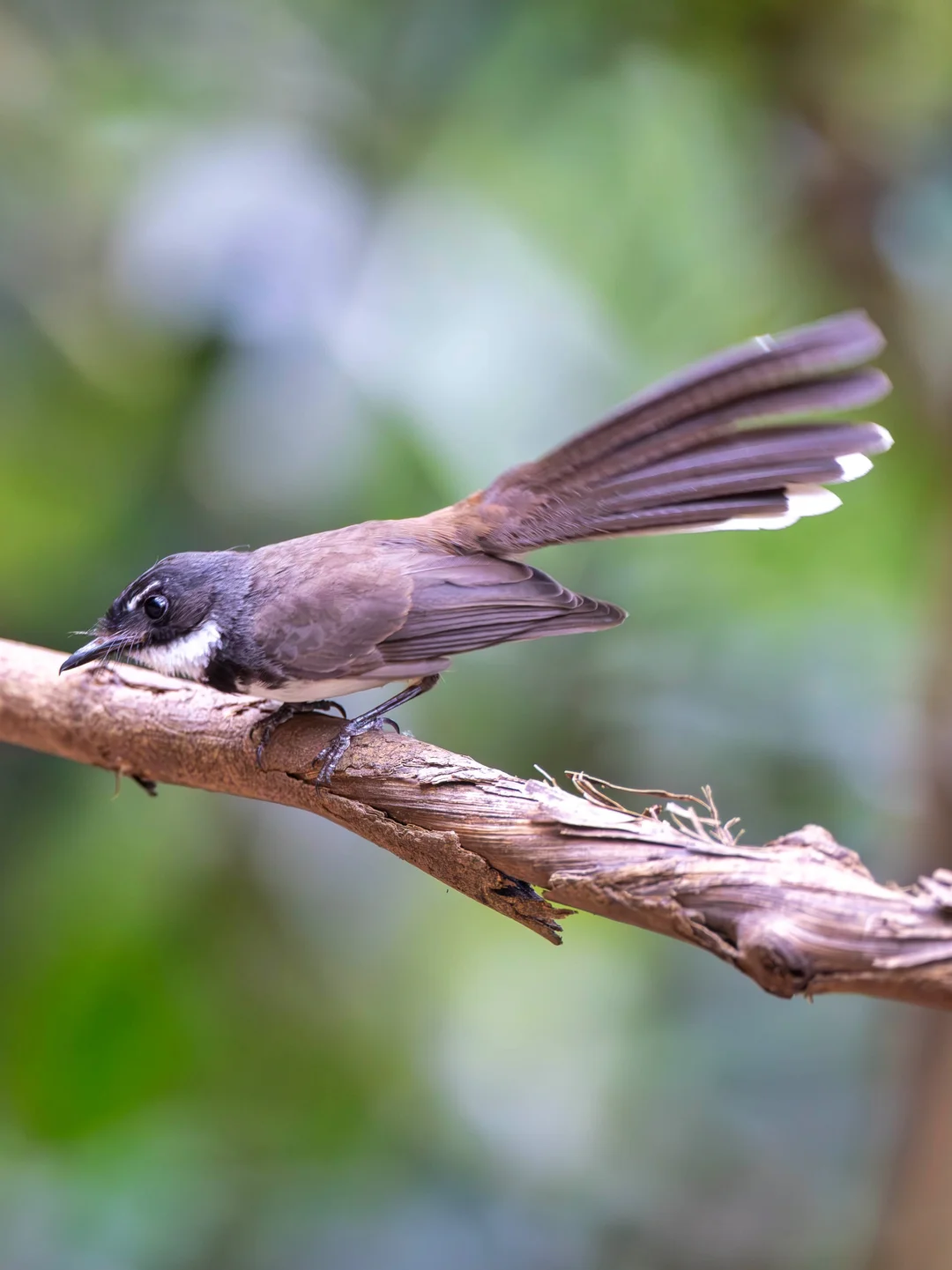 原创拍摄 斑扇尾鹟,Malaysian Pied Fantail,雀形目扇尾鹟科扇尾鹟属。这是一种分布在东南亚热带森林的大胆小鸟,按英文名字来看应该是马来西亚斑扇尾鹟,与姊妹种菲律宾斑扇尾鹟区分开来。我国可能有边缘分布。 它们腹部全白,背部没有斑纹,和近亲菲律宾斑扇尾鹟相比,白色的眉纹显得更短,没那么显眼,而且尾羽的外侧没有明显的白色尖端。这种黑白色的扇尾鹟和我们常见的白喉扇尾鹟区别还是挺大的。