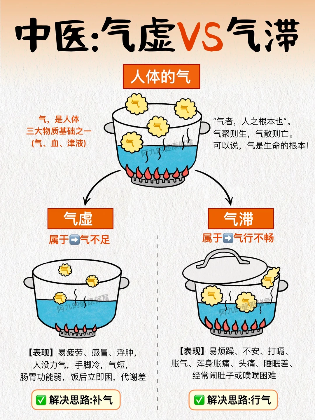 从我们身体切身感受来讲,常见的有气虚和气滞(可参考图2)