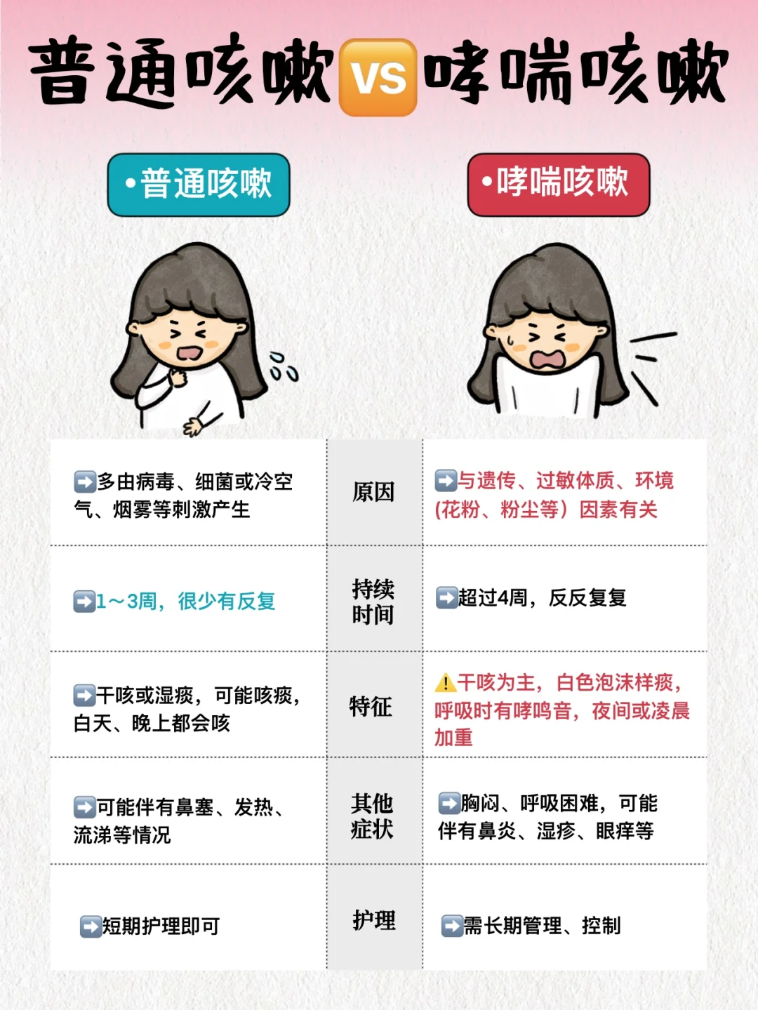 普通咳嗽🆚哮喘咳嗽可以参考图2️⃣