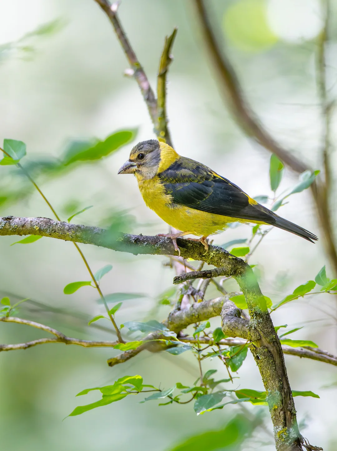 黄颈拟蜡嘴雀,Collared Grosbeak,雀形目燕雀科拟蜡嘴雀属。分布于喜马拉雅山脉,延伸到我国西南和西北部部分地区,尤其是中高海拔的阔叶林,是一种垂直迁徙的鸟类。