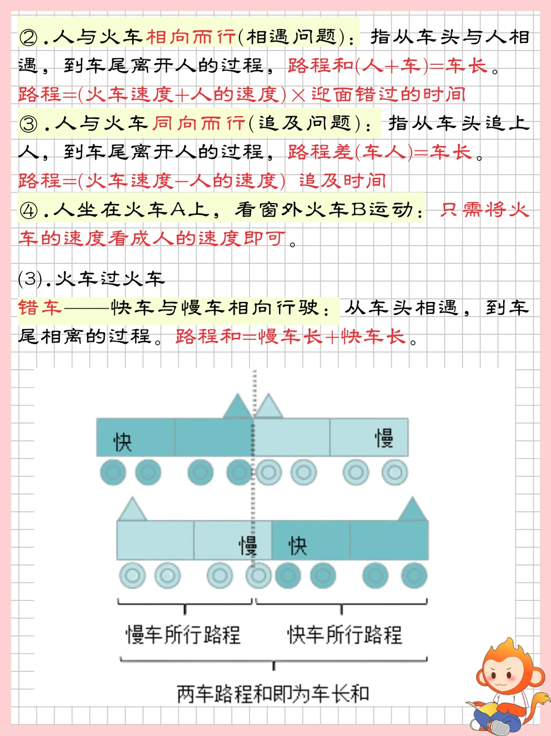 ✨吃透概念:用日常走路、乘车举例,让孩子亲身体会速度、时间、路程关系。做相遇、追及对比练习,加深理解。