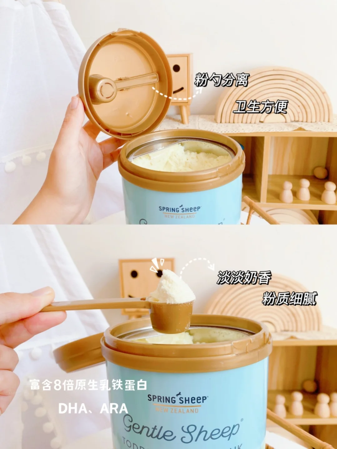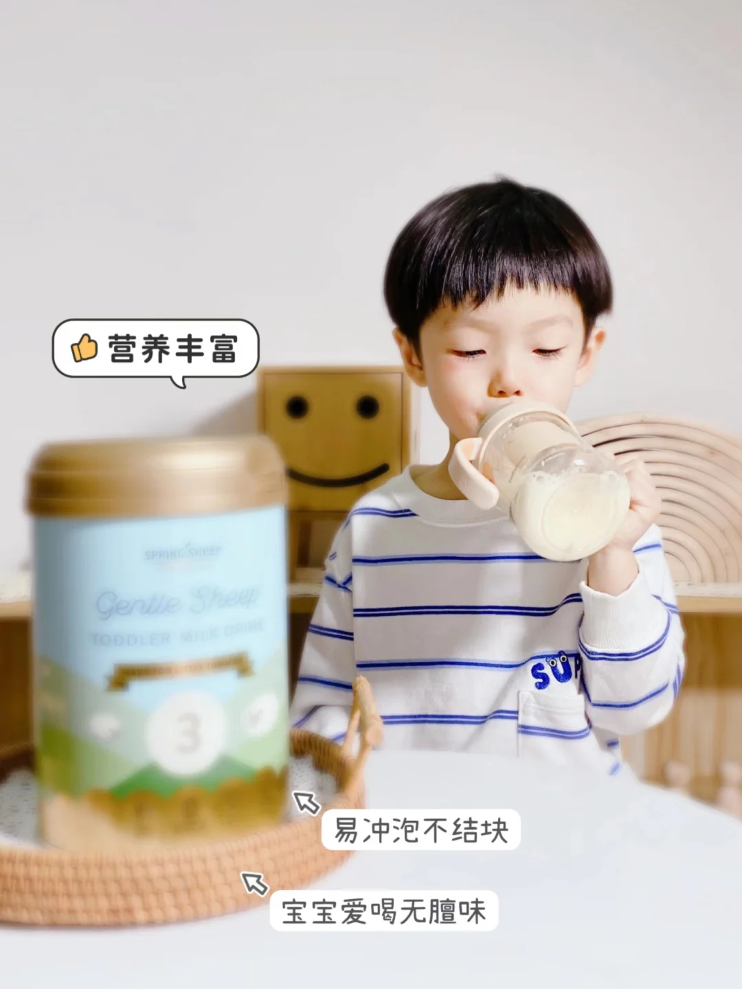 ✅刚开始选择羊奶粉最担心的是会不会有羊膻味,宝宝可能不会喝,但是Spring Sheep绵羊奶不含山羊奶中的挥发性脂肪酸,所以一点也不腥膻,我家宝宝特别爱喝,每晚满满一瓶奶粉几口气就咕咕喝光光~👍🏻