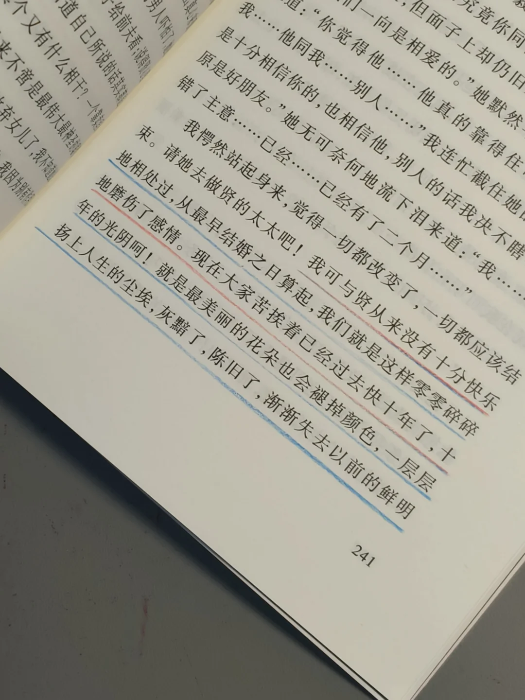 “爱情是奉献,决不是占夺或攫取。” - 📖《结婚十年》 作者|苏青 - 说来惭愧,也是头一回晓得苏青,据说与张爱玲齐名,是个很有才的女子。 ㅤ 256页13.7万字,一本不厚的小书,随着书页在指尖翻过,我一下子被深深卷入那个时代的漩涡,感慨万千。 - 在苏青的笔下,婚姻、家庭、父母、儿女,这些生活的元素相互交织。新旧观念的碰撞,并未改变女性悲剧的底色。书中人物承载着苏青的心声,现实与虚构交织,让我们难以分辨哪些是真实的往昔,哪些是文学的创作。但那弥漫在字里行间的痛苦与压抑,却无比真实。 ㅤ 她真的是胆大才大,在她那个年月里,竟毫不避讳,直言生育之苦、夫妻之间的矛盾,还有那些被社会忽视的女性心声,将女性的真实困境毫无保留地展现出来。生育时的剧痛、为人母的责任,以及那些无法言说的绝望,每一个字都像一把尖锐的刀,刺痛我的心,也让我深切感受到女性在那个时代的艰难处境,每一丝刺痛都映射着现实的冰冷。 ㅤ 故事中的女主,曾是初入大学、身着淡绿绸衫的明媚少女,却在十年婚姻里被消磨殆尽。母亲给她的红玫瑰宝石戒,像是往昔美好岁月的见证,在她手中滚烫,却暖不了她冰冷的心。四次生育的伤痛,换来的是无尽的绝望。她不是没有想过逃离,可世俗的偏见、道德的约束,像沉重的枷锁,将她紧紧束缚。 - 摘一段书中直击人心的话: ㅤ “没有一个男子能静心细赏自己太太的明媚娇艳,她总以为往后的时间长得很,就可以慢慢儿来,殊不知歇过三五年便生男育女了,等他用有欲无爱的眼光再瞥视她时,她已变成平凡而噜苏的,抱在怀中像一团死肉般的妇人。这时候他会厌恶她,恨她,觉得她累赘,仿佛不虐待她一下不足以泄自己被屈抑的愤怒似的;她假如含泪忍受住了,也许就能够挨到白头偕老,但是她不能够。” ㅤ 寥寥数语,写尽婚姻里女性的无奈与悲凉。这不仅是书中人物的悲哀,更是无数女性婚姻生活的缩影。 - 掩上书页的那一刻,我心中满是惆怅,久久无法释怀。苏青真的太会写了,也难怪能与张爱玲齐名,一本书就像一面镜子,照出了女性在婚姻与生活中的挣扎。 ㅤ 值得我们反复品味、深思 。 ㅤ