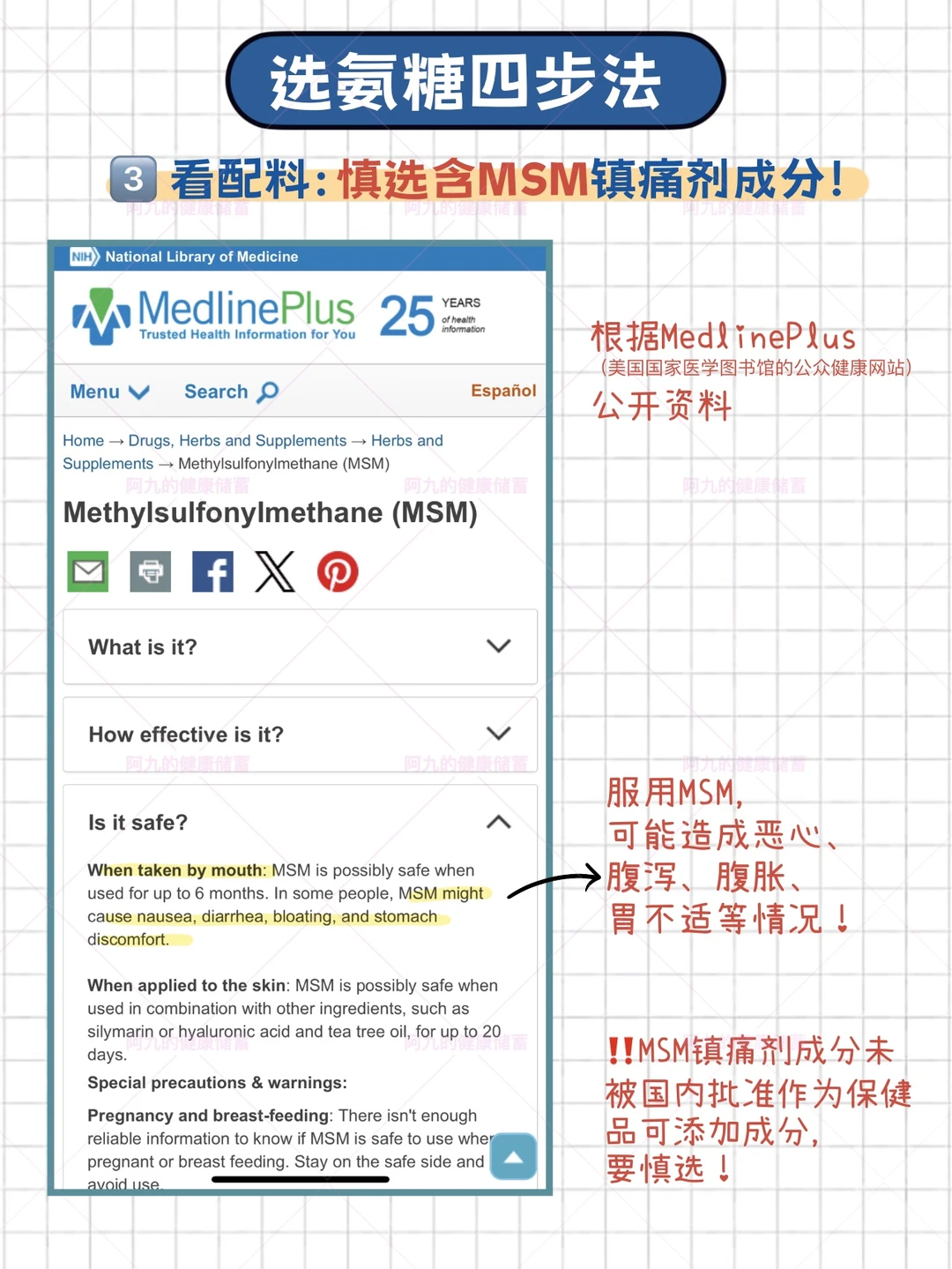 [三R]慎选带MSM镇痛剂、激素的氨糖;