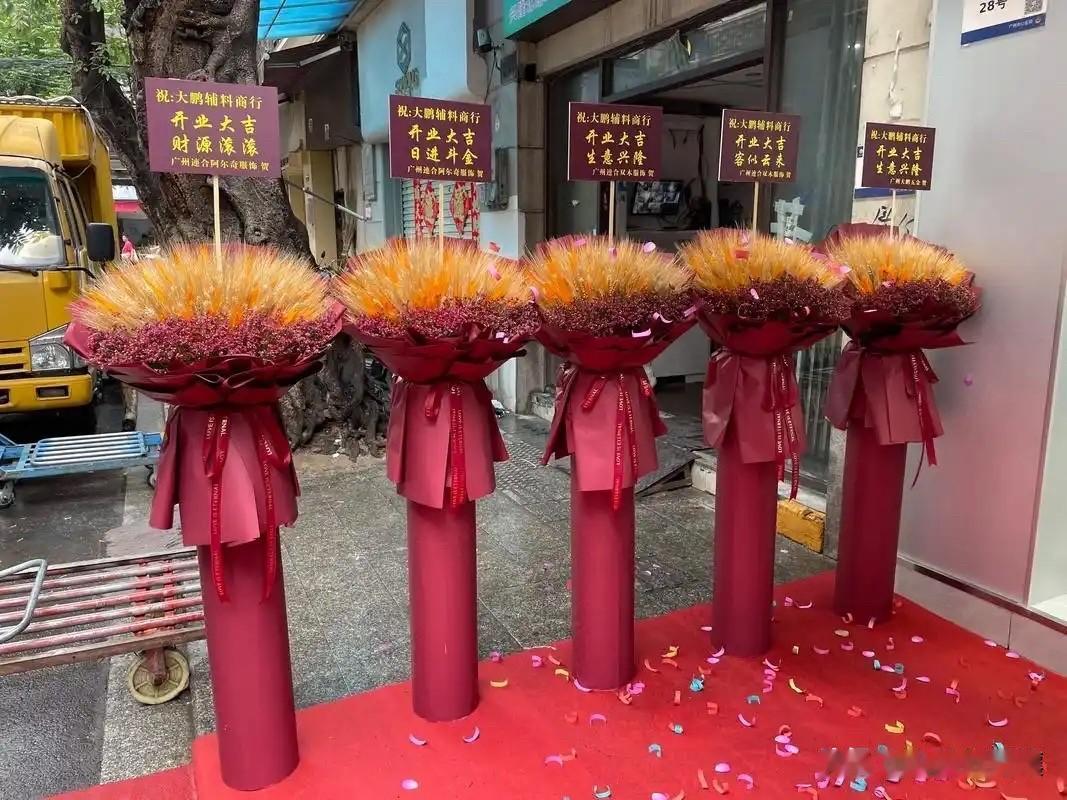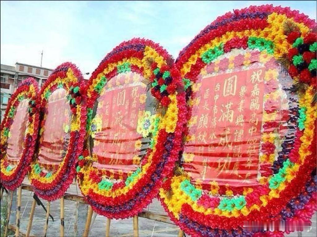 在台湾,不管是丧礼还是店家开幕,我们都很常看到那种大型花圈或花篮。(图一 ~ 图三) 丧事上代表哀悼与怀念,喜事上则象征祝福与兴旺。花材和颜色也会依场合不同——像开幕时常见红花、黄花、满满的「开幕志庆」、「生意兴隆」字样;丧礼则多用白花、菊花,字句庄重。 但在大陆卻很少看到这样的花圈,大部分店家开幕都会用高脚花篮,插满鲜花或绿叶,有的还能排成两整排,走进去像走红毯一样,气势十足。(图四 ~图六) 我想,如果大陆店家用台湾的花圈在开幕场合,应该会很吸睛吧?