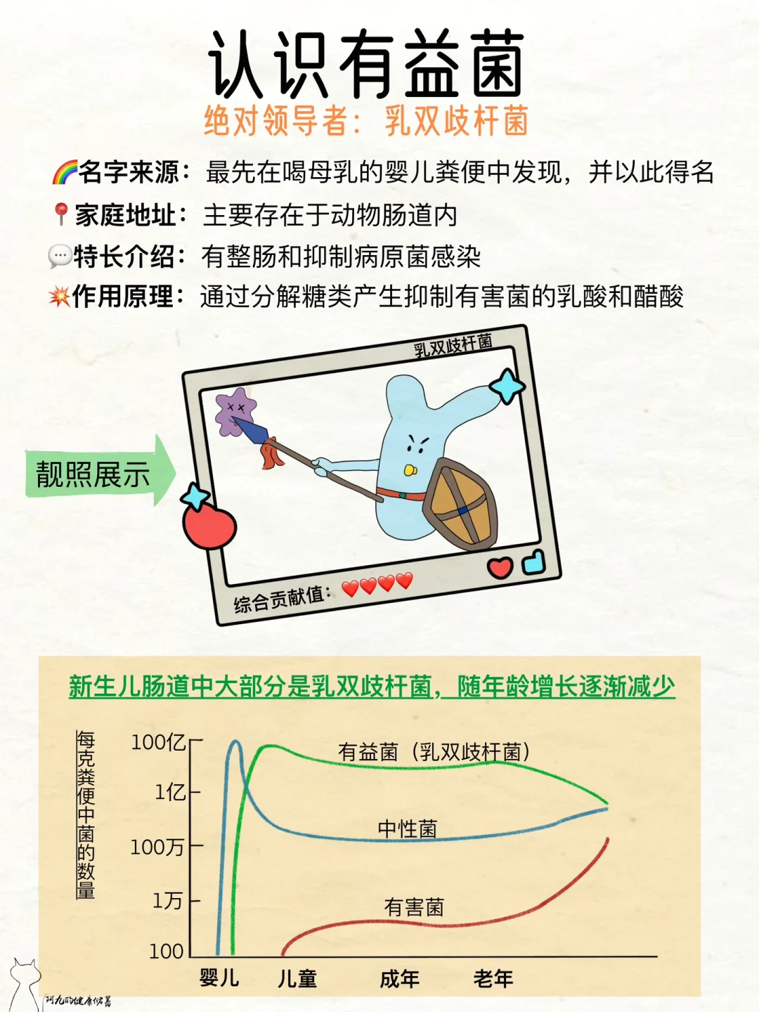 它最初是从食用母乳的婴儿便便中发现,也因此得名,而且新生儿体内绝大多数都是这种益生菌❗️但随着年龄增长数量也在慢慢减少,这就使得: