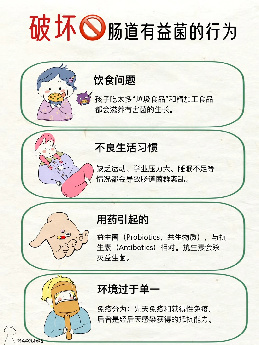 [爱心R]哪些行为会破坏儿童肠道益生菌的优势地位[黑薯问号R](见→图[四R])